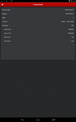 Внутри планшета «трудится» 4-ядерный процессор MediaTek MT8121 с тактовой частотой 1,3 ГГц и графикой Mali-400 MP.