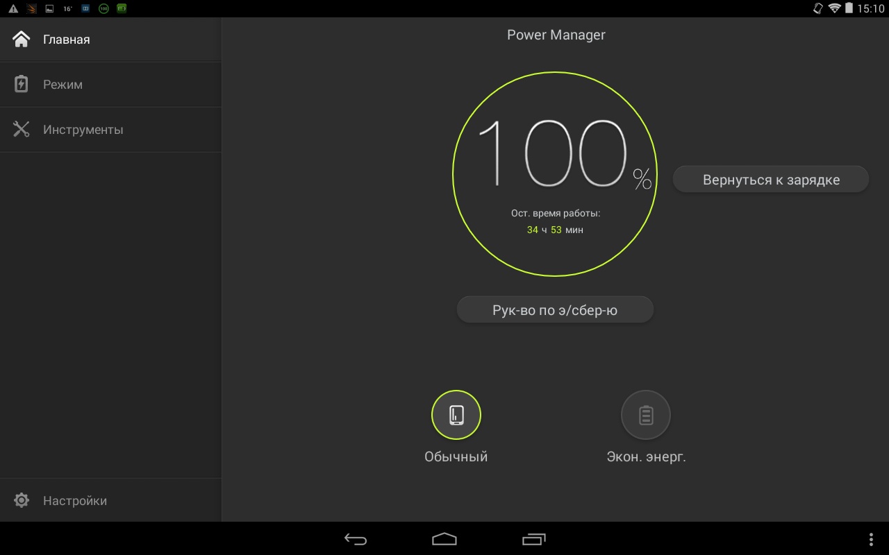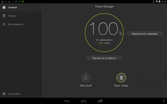 Тем более, в режиме энергосбережения «Power Manager», который здесь предусмотрен, планшет смог бы продержаться без подзарядки несколько дольше.