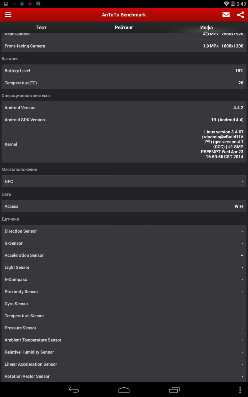 Устройство работает под управлением Android 4.2 «из коробки», но на сегодняшний день доступно уже обновление до Android 4.4.2 KitKat, что не может не радовать.