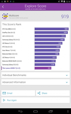Планшет работает под управлением Android 4.2 «из коробки», но на сегодняшний день доступно уже обновление до Android 4.4.2 KitKat, дополненной со стороны Lenovo лишь виджетом Smart Side Bar. Последний позволяет быстро переключаться между различными режимами работы и предоставляет пользователю доступ к недавно использованным им приложениям.