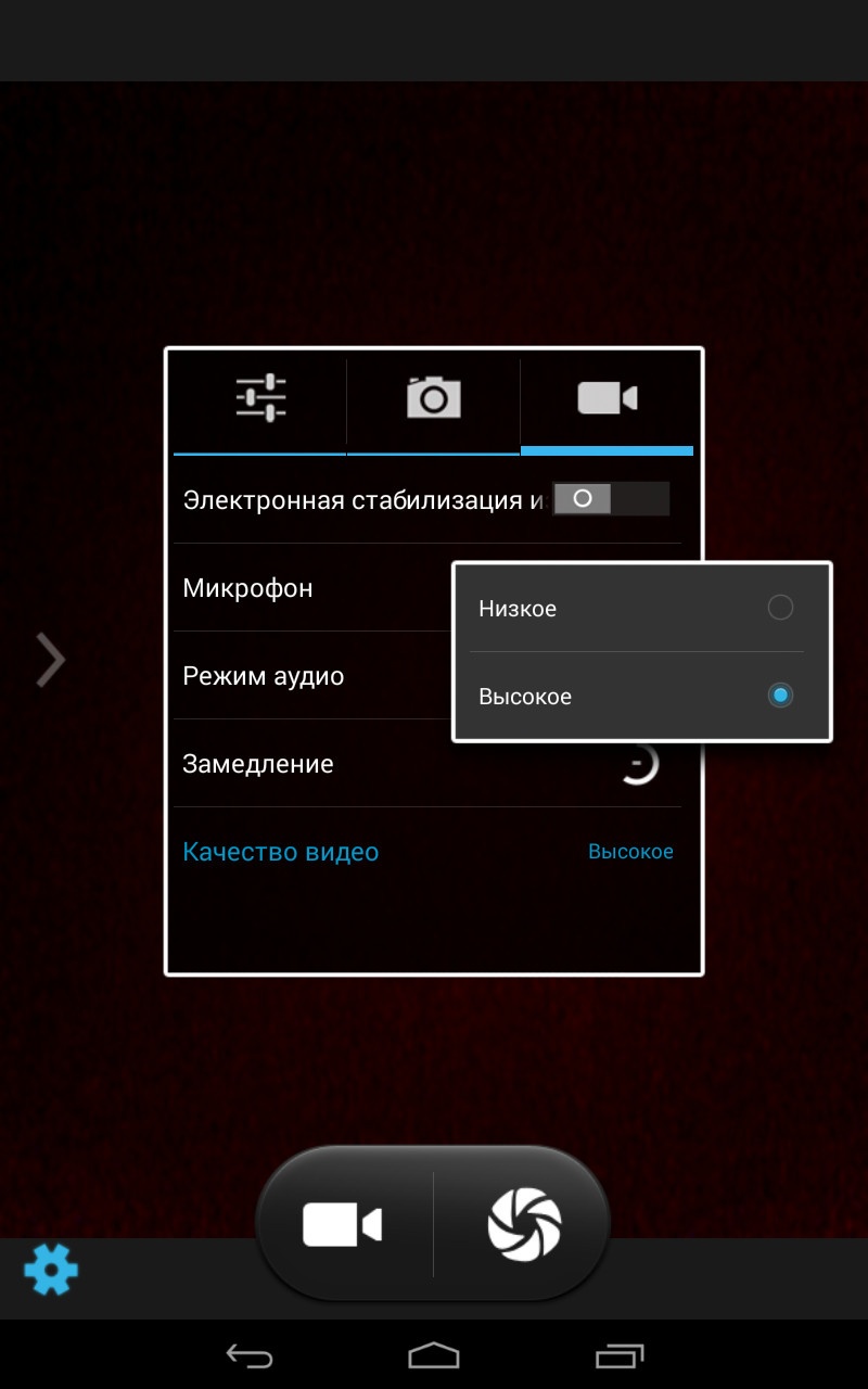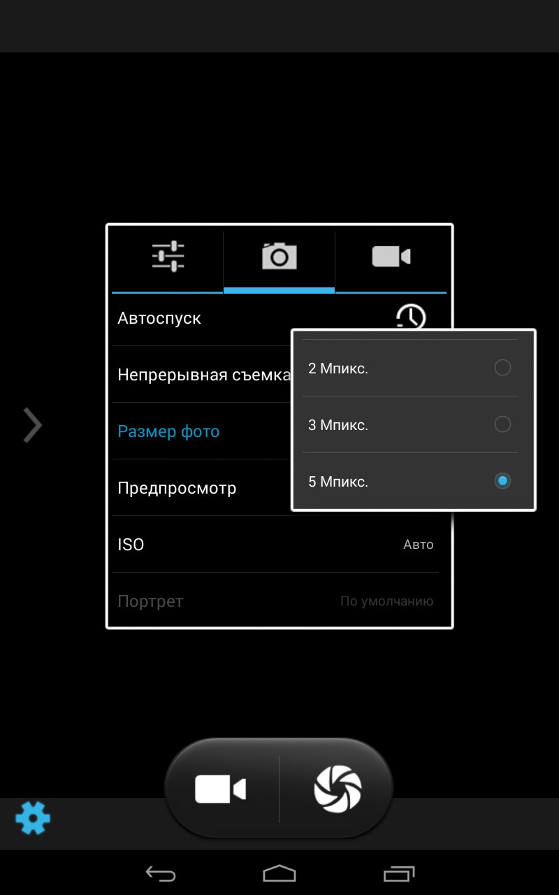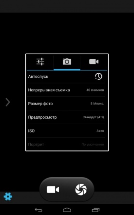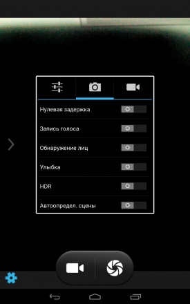 В интерфейсе фото-/видеосъемки предусмотрено несколько режимов камеры: «HDR», «Широкоугольная съемка», «Панорама», «Портрет», «Стандартный» и «Отслеживание движения».