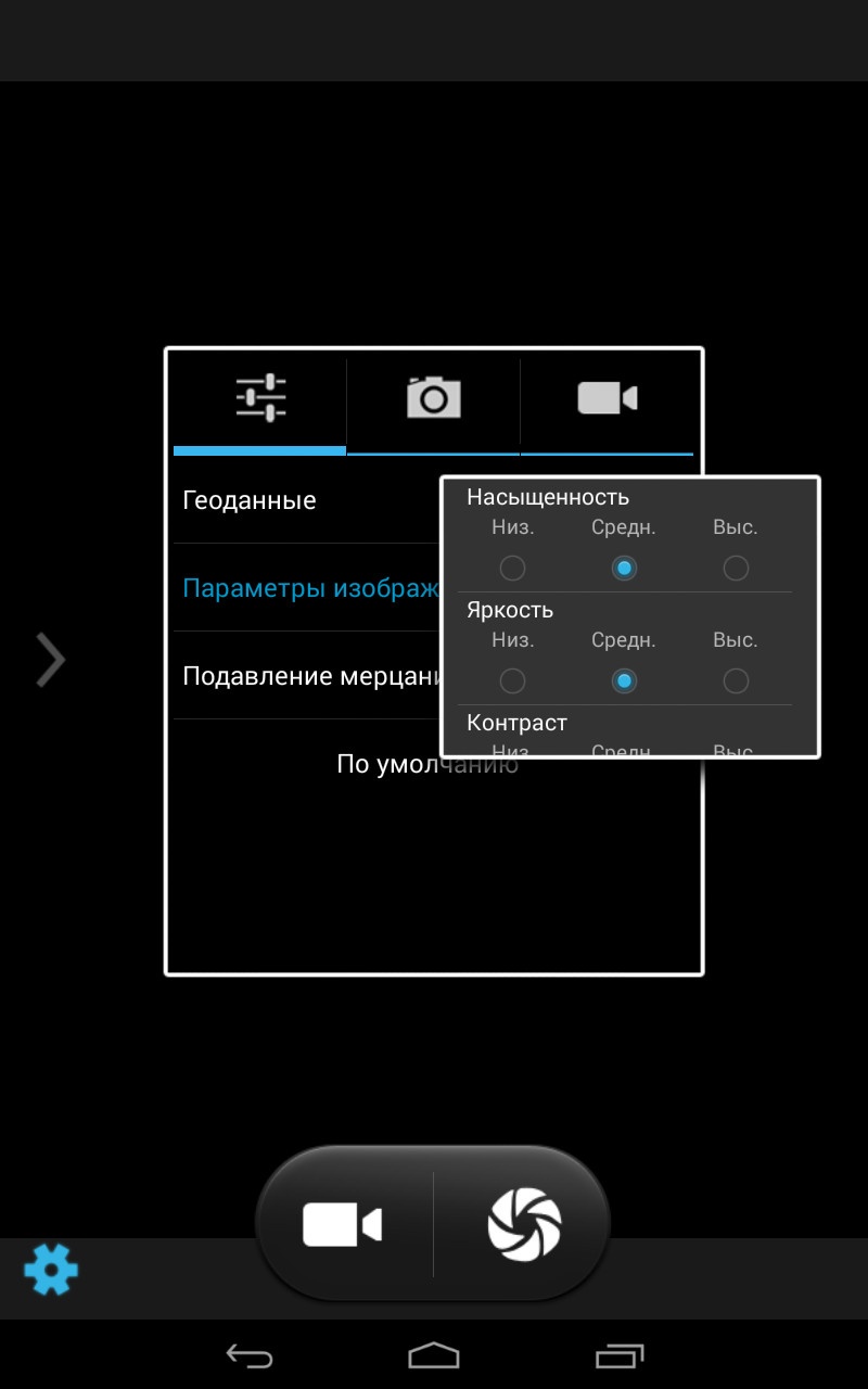 Кроме того, можно настроить ISO, выбрать уровень яркости, контраста, насыщенности, оттенка и резкости, активировать функции обнаружения лиц и непрерывной съемки, а также многое другое.