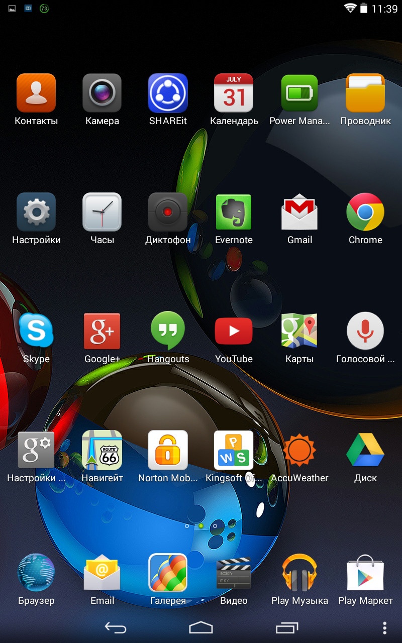 Производитель позаботился о неплохом наборе предустановленных приложений: антивирус Norton Mobile Security, утилита для чтения электронных книг «Книги», популярный офисный пакет Kingsoft Office, программа для навигации Навигейт, а также SHAREit для быстрой и удобной передачи файлов с и на другие Android-устройства.