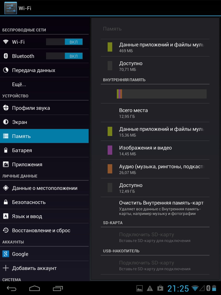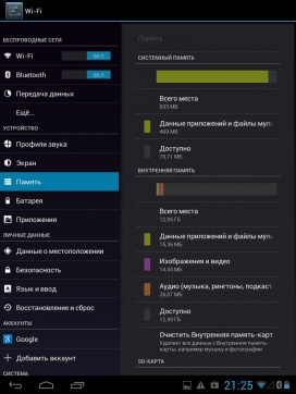 Из 16 ГБ встроенной памяти пользователю доступно порядка 13 ГБ. Расширить ее можно с помощью карт памяти формата microSD максимальным объемом до 32 ГБ. Еще плюс к этому 5 ГБ пользователю доступны в облачном хранилище SugarSync.