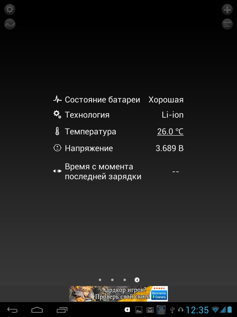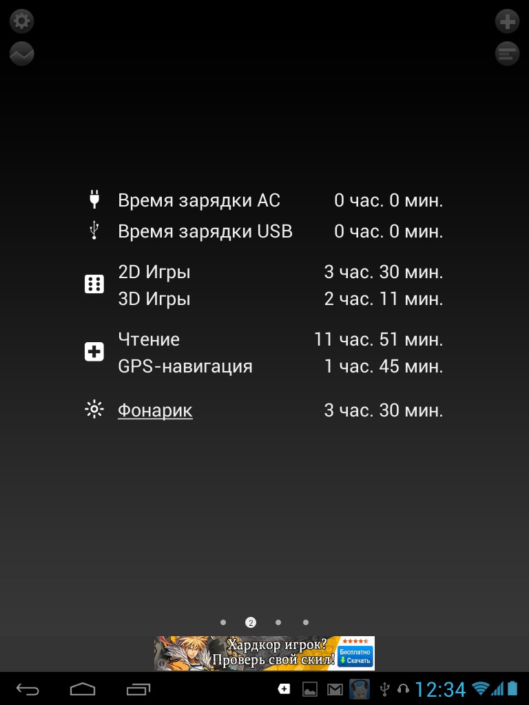 Тестирование производительности проводилось при помощи утилиты «Батарея HD». Ниже представлены результаты.