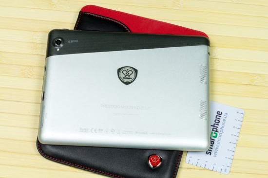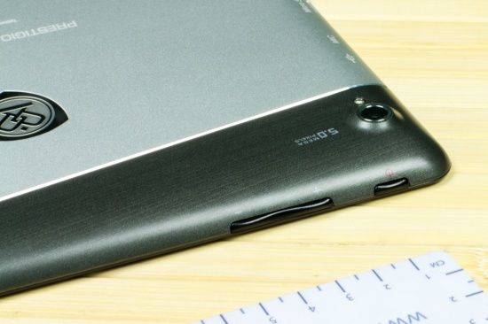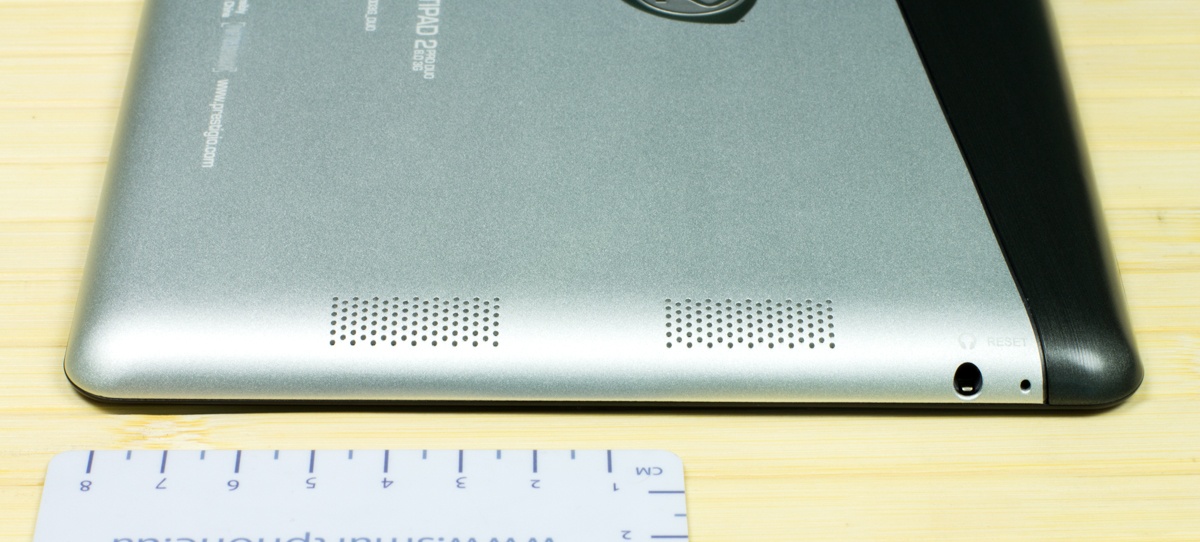 Динамиков громкой связи Prestigio MultiPad 2 Pro Duo 8.0 3G получил два. Они обустроены с правой стороны тыльной панели при горизонтальном удерживании планшета и соответственно внизу при вертикальном.