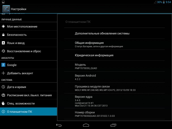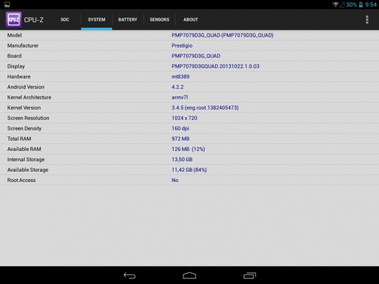 Prestigio MultiPad 4 Diamond 7.85 3G работает под управлением операционной системы Android 4.2.2 «из коробки», что для устройства такого уровня совсем неплохо. Будет ли обновление до 4.3 или редакции 4.4, на данный момент говорить рановато, ввиду того, что устройство только начало продаваться.