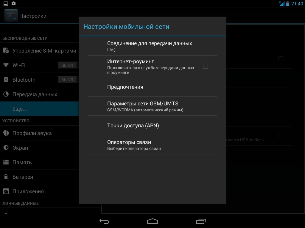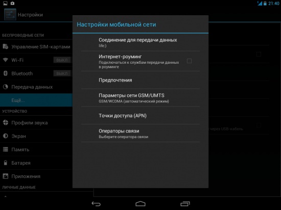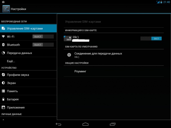 Каких-либо настроек для того, чтобы работать в Сети посредством доступа со своей мобильной карточки, выполнять не нужно. Достаточно лишь вставить micro-SIM в соответствующий слот и перезагрузить систему.