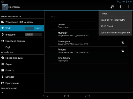 С прочего отмечается Wi-Fi с поддержкой технологии Wi-Fi Direct, а также Bluetooth, VPN, GPS и пр.