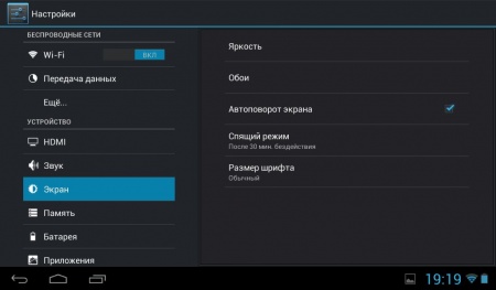 7-дюймовый дисплей с разрешением 1024х600 точек и TFT-матрицей в основе. Углы обзора с учетом цены аппарата можно назвать средними.