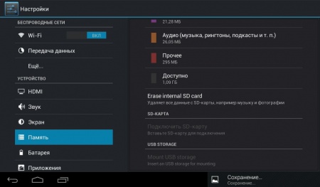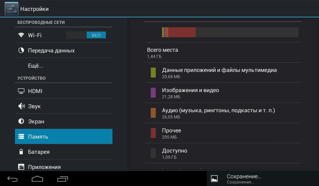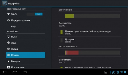С заявленных 4 ГБ встроенной памяти доступно немного больше двух: 882 МБ – это внутренняя устройства, а еще 1,44 ГБ – память на основе FLASH-накопителя.
