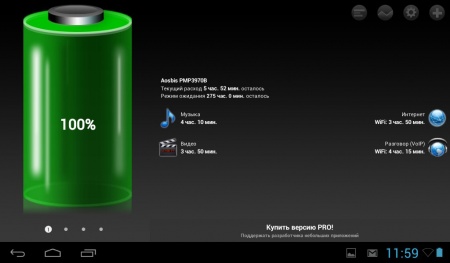 Планшет оснащен аккумулятором, емкость которого 4000 мАч.