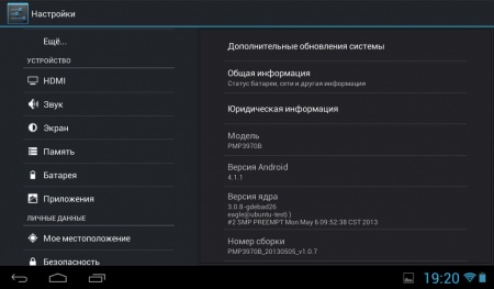 MultiPad 7.0 HD получил операционную систему Android 4.1.1. «из коробки». Об обновлении на данный момент речь не идет, но, на мой взгляд, такое решение маловероятно – все же Prestigio выпускает бюджетные планшеты довольно часто и в этом плане более свежий релиз оси выглядит куда интереснее на только что вышедшем аппарате.