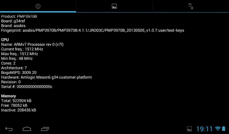 Данная модель создана на базе 2-ядерного процессора Amlogic 8726MX, тактовая частота которого 1,5 ГГц. Также на борту 1 ГБ оперативной памяти и отдельный графический чип.