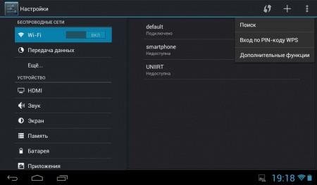 Как уже отмечалось выше, пользователь данного планшета получил возможность подключения к нему различных аксессуаров, в том числе и 3G-модема. Помимо этого, «на борту» модуль Wi-Fi с возможностью входа по PIN-коду WPS, а также VPN.