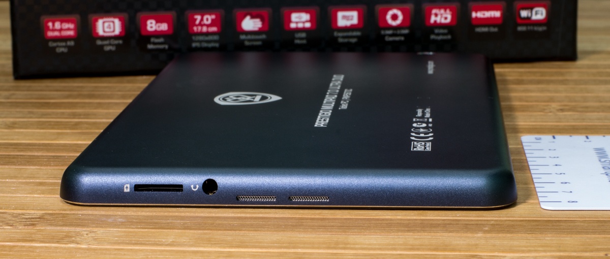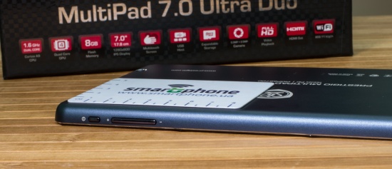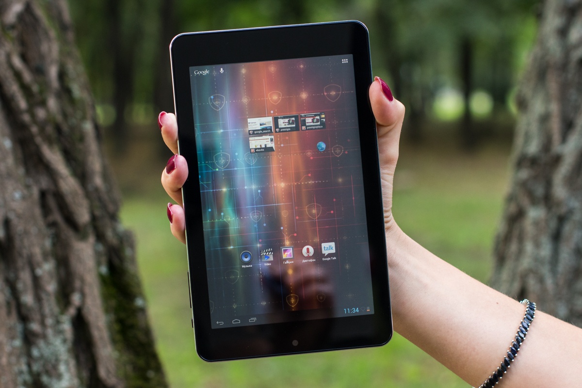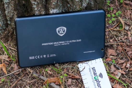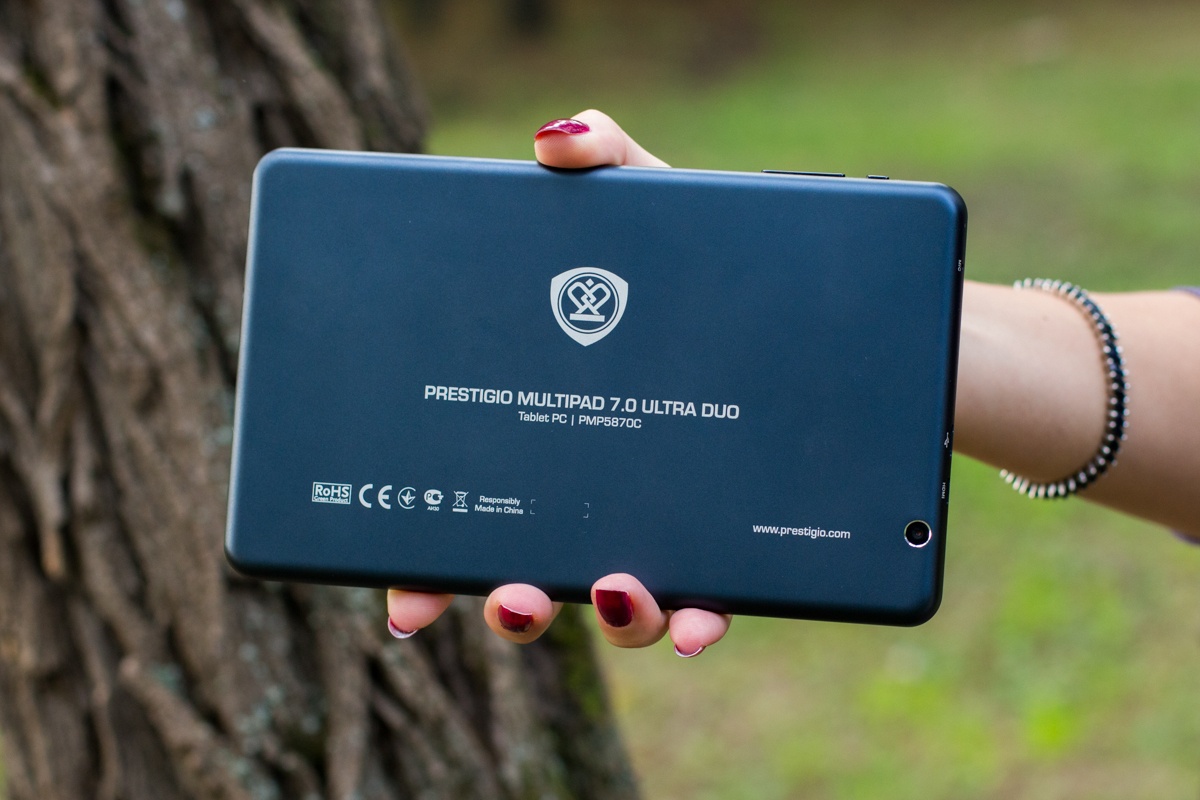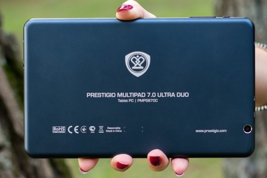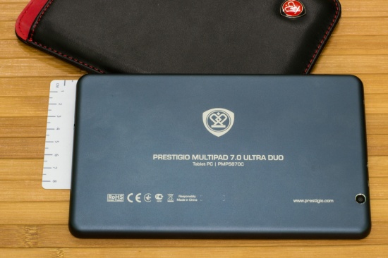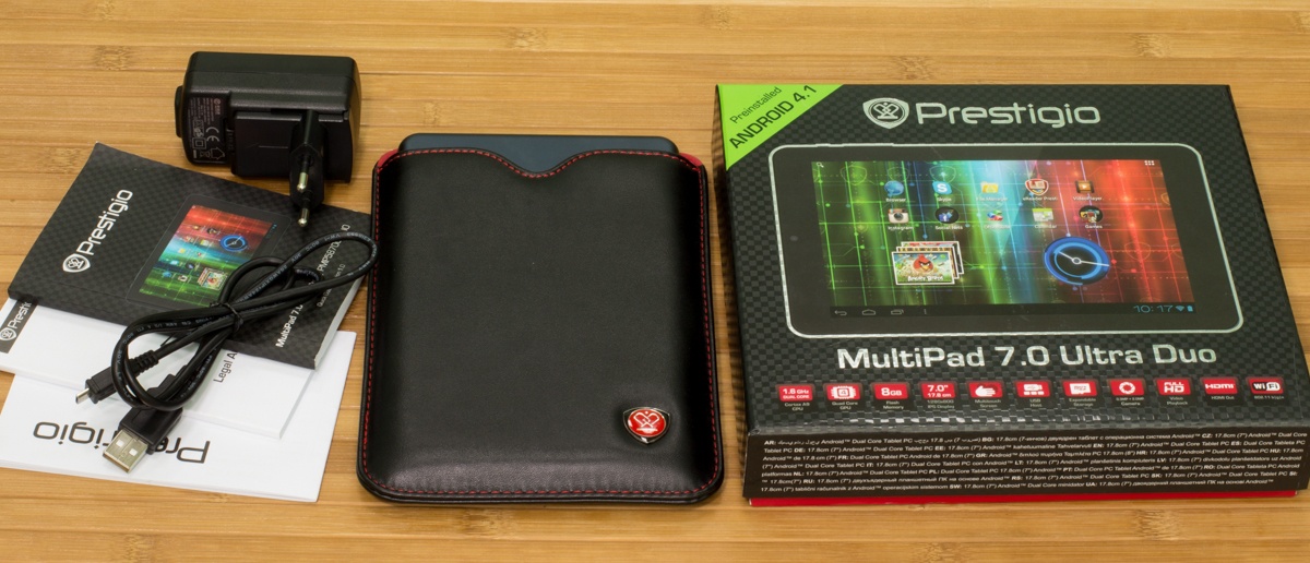 Обзор планшета Prestigio MultiPad 7.0 Ultra Duo150-долларовое решение с 7-дюймовым IPS дисплеем, возможностью подключения внешних устройств, неплохим «железом» и что не менее интересно металлическим корпусом. Насколько интересным получился планшет, а также о моих впечатлениях от эксплуатации читайте далее. Лень читать текстовый обзор? Смотрите видео-обзор...Комплект поставкиПланшет приехал в традиционной для всех продуктов компании Prestigio коробке с текстурой под карбон, на стенках которой помимо прочих данных в виде пиктограмм вынесена информация о ключевых достоинствах планшета, а также версии оси, под которой он работает. Комплектация MultiPad 7.0 Ultra Duo не стала неожиданной. Вместе с планшетом в коробке предусмотрен адаптер зарядного устройства, кабель micro-USB, кожаный чехол-карман, инструкция пользователя, руководству по безопасности и USB-OTG-переходник. ДизайнОригинальности внешности Prestigio MultiPad 7.0 Ultra Duo придает цельнометаллический алюминиевый корпус с хромированной рамкой вокруг дисплея. Что сказать, благодаря использованию этого материала устройство получилось не только стильным, но и надежным. На рынке планшет представлен в двух цветах — черном и темно-синем. Гаджет довольно тонкий — его толщина 9 мм. Металл придал ему увесистости — 305 грамм. Собран корпус отменно, что логично, учитывая особенности используемого материала — за время использования не услышала ни скрипов, ни «похрустывания», не удалось обнаружить и каких-либо люфтов. Благодаря небольшим габаритам и шероховатой тыльной панели держать его в одной руке мне было удобно. Функциональные элементыПереднюю панель планшета поделили между собой 7-дюймовый дисплей и глазок 0.3Мп камеры над ним. Стандартные для операционной системы кнопки «Назад», «Меню» и «Домой» расположены непосредственно на экране. Правую боковую грань производитель отдал под кнопку питания и качельки регулировки громкости, а левую оставил пустой. На верхнем торце разместились выход mini-HDMI,разъем micro-USB и микрофон, а на нижнем слот для карт памяти MicroSD/SDHC, 3.5 мм аудиоразъем и два динамика. На тыльной панели имеется глазок 2Мп камеры, логотип компании-производителя и служебная информация об устройстве. Дисплей7-дюймовый дисплей планшета реализован на основе качественной IPS-матрицы, что обеспечило ему в результате большие углы обзора. Разрешение экрана не высокое— 1280x800 точек, плотность пикселей на дюйм 160 dpi. Прослеживается пикселизация. Но сказать, что она сильно «режет глаз» при повседневном использовании девайса, я не могу. В яркую солнечную погоду максимального уровня подсветки дисплея, отрегулировать которую можно лишь в ручном режиме, мне показалось недостаточно. Но вот что не могу отрицать, так это быструю и точную реакцию сенсора планшета на нажатия, который поддерживает технологию мультитач по 5 точкам. Краткие технические характеристики
