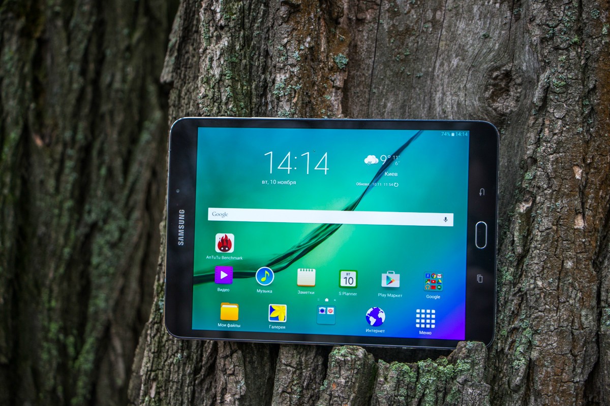 ПОGalaxy Tab S2 8.0 поставляется на Android 5.0.2 «из коробки». К слову, производителем обещано обновление операционной системы и до более новых версий в ближайшее время. Поверх оси установлена оболочка TouchWiz, версия которой идентична той, что используется в ранее тестируемом Galaxy Note 5. Среди предустановленных приложений: пакет программ от Microsoft, широкий набор утилит Google, фирменные приложения Samaung, в числе которых S Planner, Smart Manager, Galaxy Apps и тд. Поддерживается управление жестами и работа в двухоконном режиме. ВыводыЧто ж, планшет у Samsung, как видите, получился достойный. Здесь и производительность на высоком уровне, и автономность хорошая, а экран и того более один из лучших в этом классе устройств. Отдельной похвалы заслуживает дизайн – ультратонкий корпус придает Galaxy Tab S2 8.0 элегантности плюс делает его одним из лучших решений в сегменте 8-дюймовых планшетов с точки зрения эргономики. Понравилось звучание и возможности камер, однако последней явно не хватает LED-вспышки при сьемки в плохо освещенных местах. Из плюсов можно выделить также корректно работающий сканер отпечатка пальца, а из минусов отсутствие NFC-чипа и высокий на старте продаж ценник в 12000 грн.
