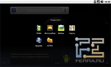 Производитель не стал мудрствовать — интерфейс ViewPad 7 представляет собой стандартный Android 2.2, «фирменная» здесь только картинка на рабочем столе — те самые разноцветные птички из Австралии. Меню приложений никак не структурировано, нет разделения на группы или хотя бы на экраны.