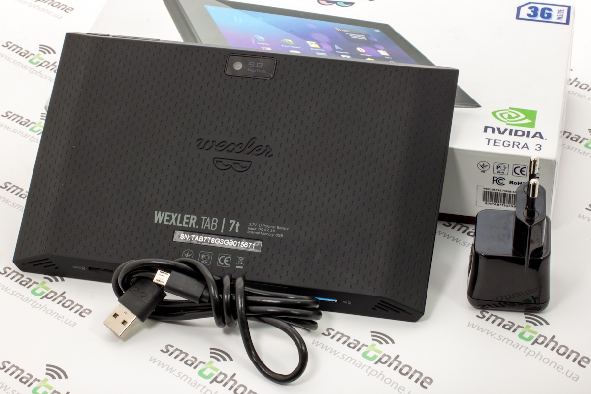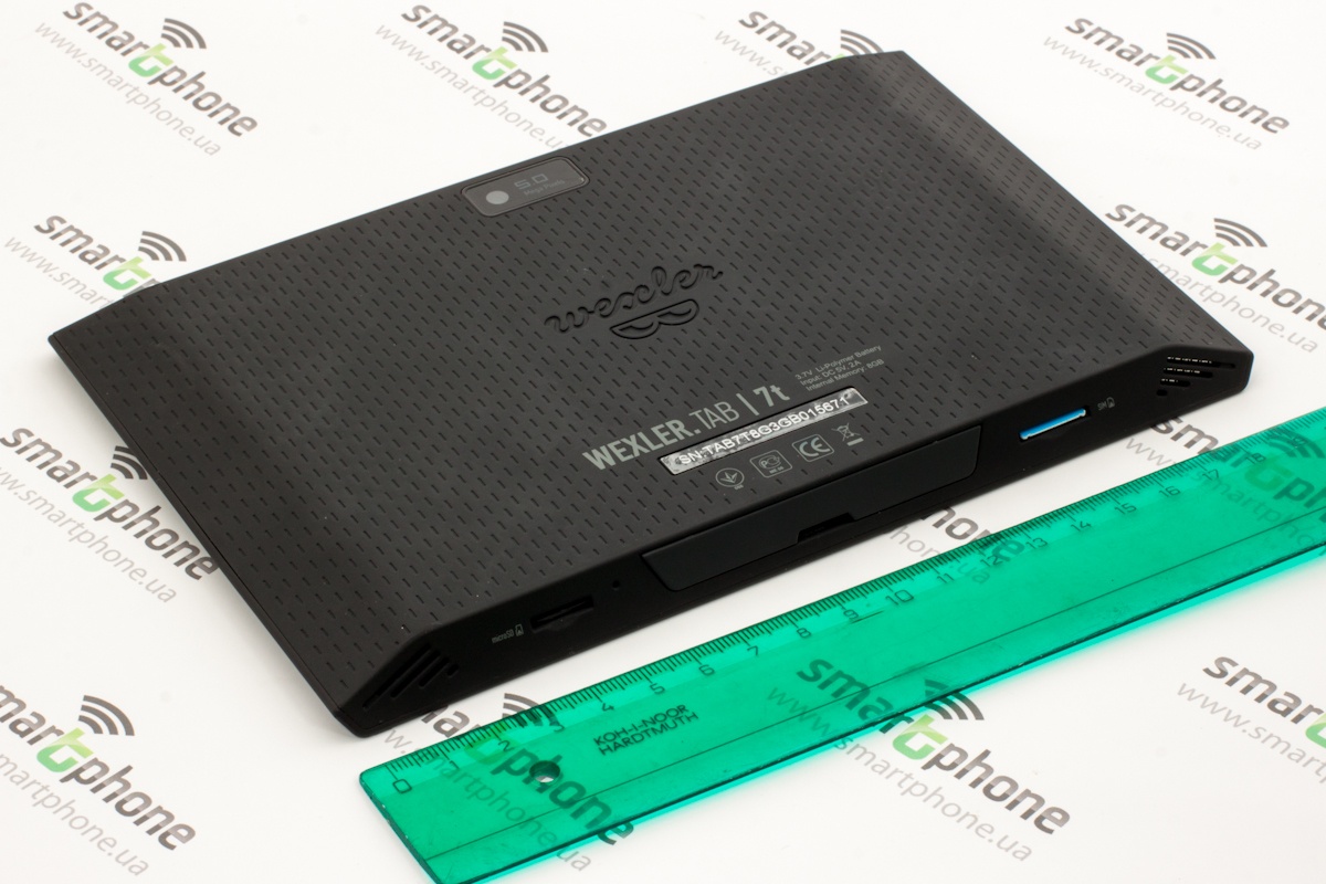 Обзор планшета WEXLER.TAB 7tЭто устройство компанией-производителем позиционируется как «доработанный и улучшений» вариант планшета Google Nexus 7. А вот может ли он претендовать на лавры знаменитой «семерки», мы и рассмотрим в этом обзоре. Лень читать текстовый обзор? Смотрите подробный видео-обзор...Упаковка и комплект поставкиWEXLER.TAB 7t поставляется в компактной картонной упаковке. Материал ее прочный – деформаций стенок за время, что аппарат был у меня, не образовалось. Конечно, хотя это и мелочь, но лишний раз доказывает, что в коробке во время транспортировки устройство защищено надежно. Осматривая стенки коробки, пользователь заметит небольшой логотип чипсета, на базе которого создан WEXLER.TAB 7t. Кроме того, на нижней стенке расположен логотип редакции операционной системы. Здесь же данные о дисплее, информация о навигационной системе и многое другое. Внутри кроме, разумеется, самого аппарата, находится адаптер зарядного устройства, кабель micro-USB, руководство по эксплуатации и пара бонусов в виде мультикарты WEXLER, а также виртуальной валюты к игре King’s Bounty. Материалы корпуса и качество сборкиВ WEXLER.TAB 7t производитель сделал все, чтобы длительная непрерывная работа пользователя с устройством не оказалась слишком обременительной. Стоит отдать должное - основной материал корпуса, а это прорезиненный рифленый пластик со скошенными углами, справляется с этой задачей отлично. Материал передней панели – закаленное стекло. Подгонка к пластиковой части корпуса выполнена хорошо – ни ощутимых швов или зазоров, ни, более того, люфта нет. Не могу также не отметить и тот нюанс, что пластиковая окантовка вокруг стекла на панели приподнята где-то на полмиллиметра. Но врядли такое решение можно назвать ощутимой защитой для стекла. Впрочем, защитным стекло названо не зря – за те несколько месяцев, что планшет был у меня, по итогам ежедневной, хотя и не длительной эксплуатации, отметин на поверхности не образовалось. Проработка функциональных элементов у меня претензий также не вызвала. А вот крышка на нижнем торце, которая прикрывает полноценный USB-порт и некоторые другие, обладает не очень хорошим ходом – придется наловчиться. Но это, пожалуй, единственная претензия с моей стороны. В остальном аппаратная часть на высоком уровне. ДизайнКонечно, не стоит во внешности 300-долларового планшета искать какого-либо рода революцию, бомбу или чего-то подобного. Тем не менее, упомянутый рифленый пластик с заостренными углами сделал аппарат другим, непохожим на массу существующих на рынке собратьев. Эргономика функциональных элементовНа передней панели, кроме 7-дюймового дисплея да трех сенсорных кнопок чуть ниже его, сверху находится глазок фронтальной VGA-камеры. В теле тыльной панели выведен глазок 5 Мп камеры, гравировано название компании-производителя, а кроме того, имеется некая техническая информация о новинке, данные о маркировке и пр. Правый и левый торцы в виду специфической стилистики реализации остались без функциональных элементов. На верхнем расположена спаренная клавиша регулировки громкости звука, а также кнопка включения/выключения питания аппарата. А вот нижний торец, упоминанием о котором мы и ставим точку в этом разделе статьи, получил выводы встроенных динамиков, слот для SIM-карты и карты памяти, полноценный USB-порт, а также порты Micro-USB, m