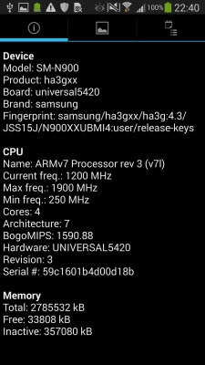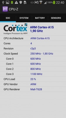 Как и в случае с Samsung Galaxy S4, Note 3 также представлен в нескольких модификациях. В частности, с поддержкой LTE и без нее. Поскольку в нашей стране как таковой сети LTE нет, да и не предвидеться в ближайшее время, ввозить эту модификацию трубки никакого смысла нет. Таким образом, украинские пользователи смогут купить (а некоторые, надо полагать, уже купили) версию на базе Exynos Octa 5420. Это первое «8-ядерное» решение Samsung, оснащенное 4-ядрами Cortex-A7 с тактовой частотой 1,3 ГГц, а также аналогичным количеством ядер Cortex-A15, работающих на частоте 1,9 ГГц. Кроме того, «на борту» графика Mali-T628 MP6 с поддержкой OpenGL 3.0 и 3 ГБ оперативной памяти.
