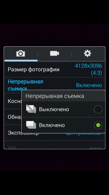 Основная камера обладает 13 Мп BSI сенсором, автофокусом, LED-вспышкой и множеством настроек/режимов съемки. В целом же спецификации модуля такие, как и в Galaxy S4.