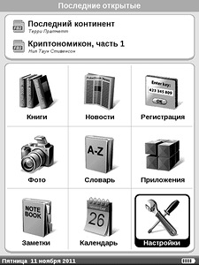 Обзор PocketBook 611 BasicДля начала - краткое резюме. Pocketbook 611 Basic - приятная, простая, недорогая e-ink читалка, качественный украинский ответ червёртому Киндлу. Единственные значительные минусы - не слишком удачные управляющие кнопки, особенно джойстик, и не слишком "прозрачное" управление - не всегда понятно на какую кнопку жать. А вот со скоростью работы, качеством поддержки форматов и прочим - полный порядок. К покупке рекомендуется. ![]() Амазон со своим свехрдешёвым Киндлом 2011-го года издания, конечно, подложил всем остальным производителям читалок большую и жирную свинью. Уже сейчас, в ноябре 2011 года, когда с момента появления Kindle 4 на свет прошло всего-ничего времени - буквально пара месяцев, его можно купить у нас в стране (в России) всего за 5000 рублей. И это если в магазине. Ну да, конечно, не в "Евросети" и не в "Связном", т.к. поставки целиком и полностью неофициальные и серые... Но тем не менее. Как ни странно, и среди "серых" магазинов есть вполне надёжные. Если же пошерстить по частным объявлениям, то и ещё более дешёвые предложения есть, тысячи по четыре. И это цена за новое, очень шустрое и удобное устройство. Одна беда - нормальные с точки зрения российского читателя форматы FB2 и ePub Киндл категорически не понимает. Для технически подкованного балбеса беда небольшая, благо сконвертировать книжку в понимаемый амазонами формат mobi несложно, но дарить Киндл маме я бы пока не рискнул. Но всё равно. Амазон, даже официально у нас в стране не присутствуя, игрок для всех ориентирующихся на наш рынок производителей читалок смертельно опасный. До появления 611 Basic, самой дешёвой моделью у PocketBook была 360 Plus, продающаяся в настоящий момент за 5500 (иногда чуть меньше) рублей. То бишь практически те же деньги, даже чуть дороже чем Киндл. Но диагональ экрана меньше - пять дюймов против шести Киндловских. Если честно - в среднем мне пятидюймовые читалки нравятся даже больше чем шестидюймовые. Они компактнее, легче и в бОльшее количество карманов влезают (правда - ох уж этот Амазон - Kindle 4 аж на сантиметр уже PocketBook 360 Plus зато на сантиметр с хвостиком длиннее, в общем, паритет). Но экран шесть дюймов на текущий момент - практически стандарт. А предыдущие шестидюймовые Покетбуки, увы, существенно дороже четвёртого Киндла. От семи-восьми тысяч рублей и выше. Даже за древний PocketBook 301, 2008 года выпуска, не говоря уж о свежем Pro 612. ![]() То бишь ежу было понятно, что Покетбуку надо что-то делать и срочно предлагать недорогое (на уровне Киндла) шестидюймовое решение, более удобное для русскоязычного читателя, чем иноземный Киндл. Причём предлагать его бегом, пока не настал этот... Который полный и неприличный. Итак. Что сделал PocketBook. По сравнению с их предыдущей шестидюймовой читалкой, Pro 612. Они убрали MP3-плеерную функциональность (туда ей и дорога), ужали в два раза количество оперативной памяти (ну и ладно), поставили более мощный процессор (ура), сделали управляющий блок в стиле 360 Plus (блин), убрали из комплекта чехол (комплектация получилась киндло-спартанская, да... только само устройство плюс USB-шнурок), каким-то образом сэкономили аж 100 граммов веса. Назвали модель "базовой" и выкинули на рынок по цене в районе 5500 рублей. ![]() С ценой, кстати, получилось странно. Почти во всех магазинах стоит стандартная цена 5490 рублей. Тем не менее, буквально в первый день продаж я купил его за 4999 плюс стоимость 