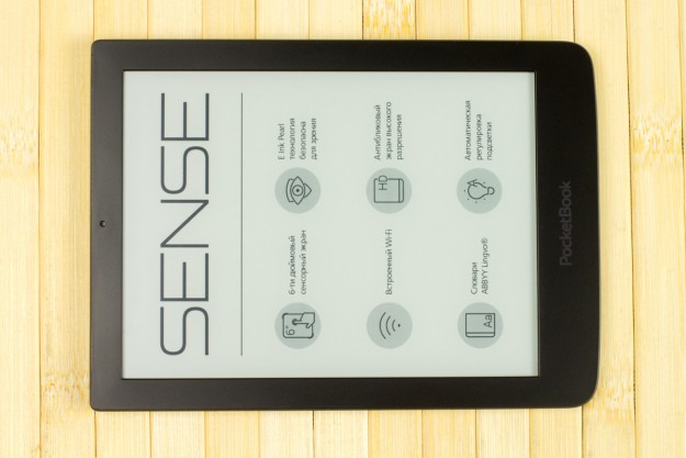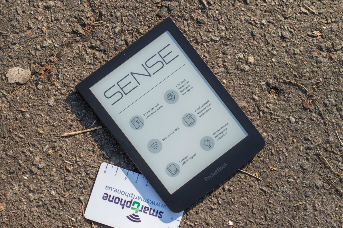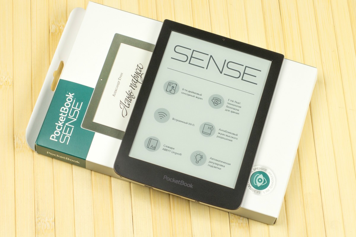 Обзор PocketBook Sense – 6-дюймовый ридер c адаптивной подсветкойВышедший этой зимой PocketBook Sense может похвастаться одним из лучших 6-дюймовых E-Ink экранов с адаптивной подсветкой и тонким корпусом – всего 7.5 мм. А еще здесь предусмотрен Wi-Fi-модуль, а потому в свободное от чтения время можно бродить в Сети, делиться прочитанным с друзьями в соцсетях через сервис ReadRate и мн. др. О том, чем еще ридер стоимостью в $200 может заинтересовать заядлого книгомана, говорим далее. Лень читать текстовый обзор? Смотрите видео-обзор...КомплектацияКомплект поставки скромен - помимо самого ридера, краткого руководства пользователя и гарантийного талона в коробке, которая, к слову, ничем не отличается от упаковок для других моделей данного производителя, предусмотрен лишь кабель USB-microUSB. О защите экрана и пластикового корпуса Pocketbook Sense от потертостей и царапин придется позаботиться самостоятельно. К тому же из-за особенностей конструкции ему подойдет не каждый универсальный чехол шестидюймового формата. Решением может стать предлагаемая производителем за 799 грн фирменная защитная обложка из кожзама. ДизайнСоздавая новый ридер, в PocketBook не стали изобретать велосипед, а взяли за основу хорошо знакомые формы. Так, к примеру, его тыльная панель – это, по сути, перевернутый вверх ногами PocketBook Ultra только лишенный объектива камеры и вспышки. Впрочем, полезность наличия последних в электронной книге все еще довольно противоречива, а вот стоимость увеличивает существенно. Остальные элементы остались неизменными: петля для крепления страховочного ремешка и две аппаратные клавиши для перелистывания страниц для правой и левой руки. Правда, пользоваться ими, удерживая ридер одной рукой, все так же чревато выскальзыванием устройства, так как приходится держать за самый край. И тут на помощь может прийти вышеупомянутое отверстие для ремешка (на запястье) – на мой взгляд, такой аксессуар будет очень полезен, в частности, при использовании книги в транспорте, но его придется покупать отдельно. Передняя панель Sense выглядит куда более оригинально. Если тыл и боковушки гаджета окрашены в коричневый слегка перламутровый цвет, то довольно толстая рамка вокруг экрана букридера матовая черная. В отличие от того же Ultra, Sence лишен механических кнопок управления под дисплеем за счет чего он более компактный - 151,4x109,9x7,5 мм, а соответственно удобнее в управлении одно рукой. А еще это один из самых тонких ридеров в мире – с легкостью проскальзывает в карманы курток, пальто и даже джинс. Из примечательных элементов спереди можно выделить датчик освещенности, который адаптирует подсветку экрана в зависимости от условий наружного освещения. И делает он это, скажу я вам, достаточно корректно. Подобное решение, кстати, ранее было применено лишь в флагманском Amazon Kindle Voyage.