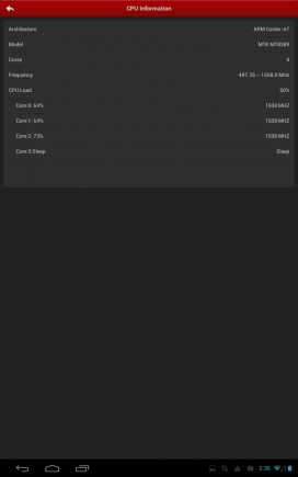 4 ядра, 1.6 ГГц, RockChip RK3188 | 4 ядра, 1.2 ГГц, MediaTek MT8389 |