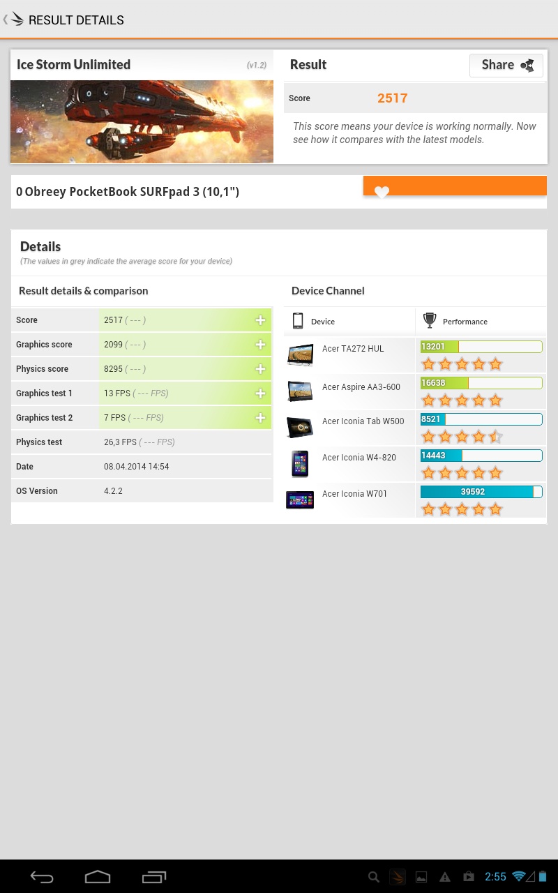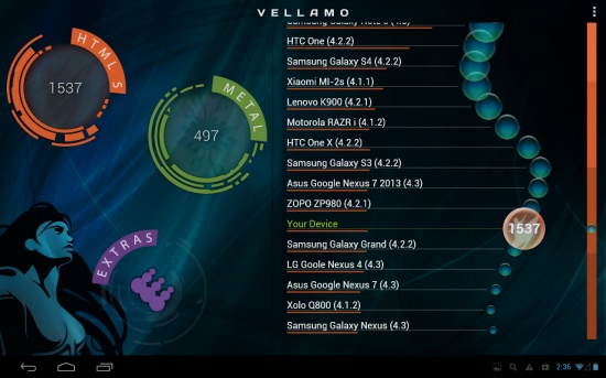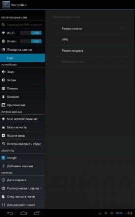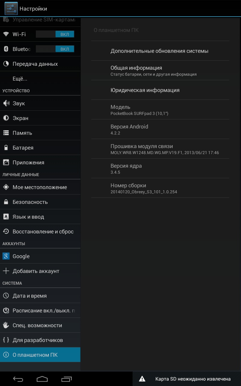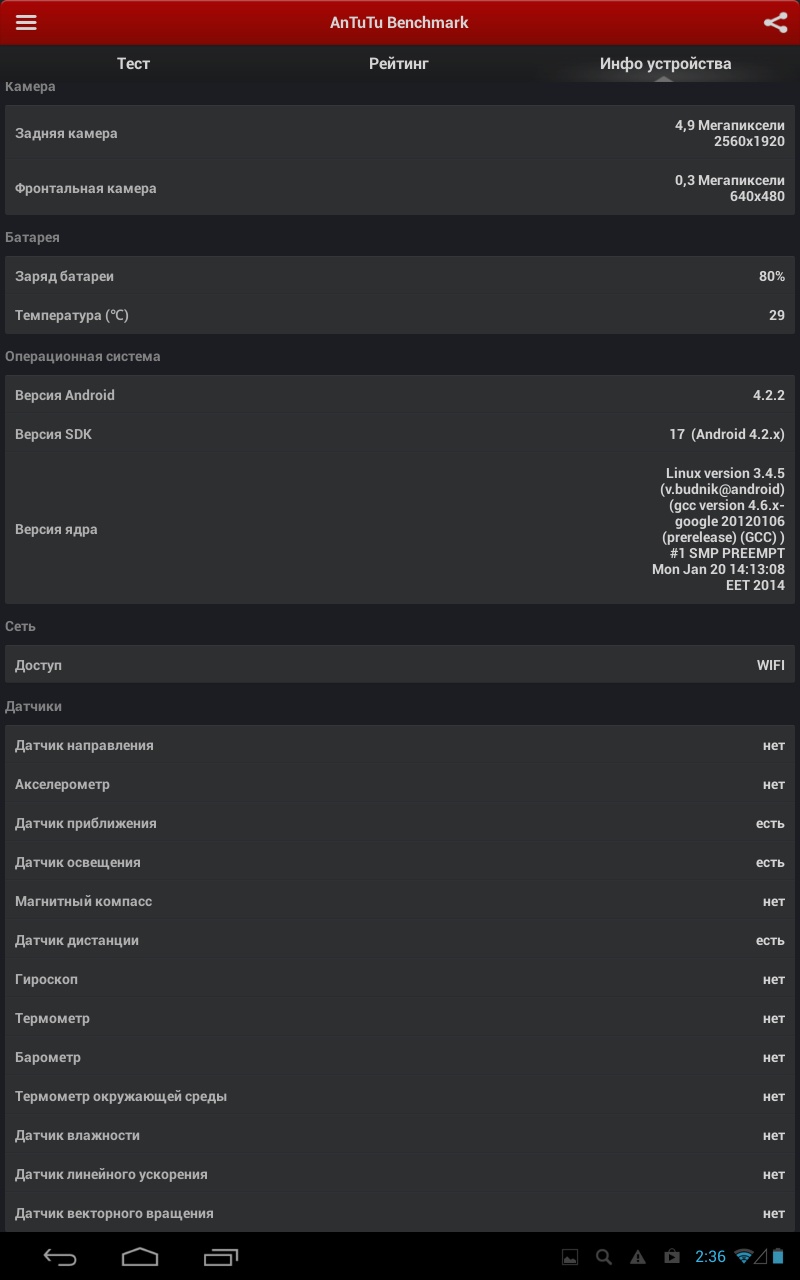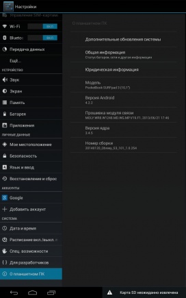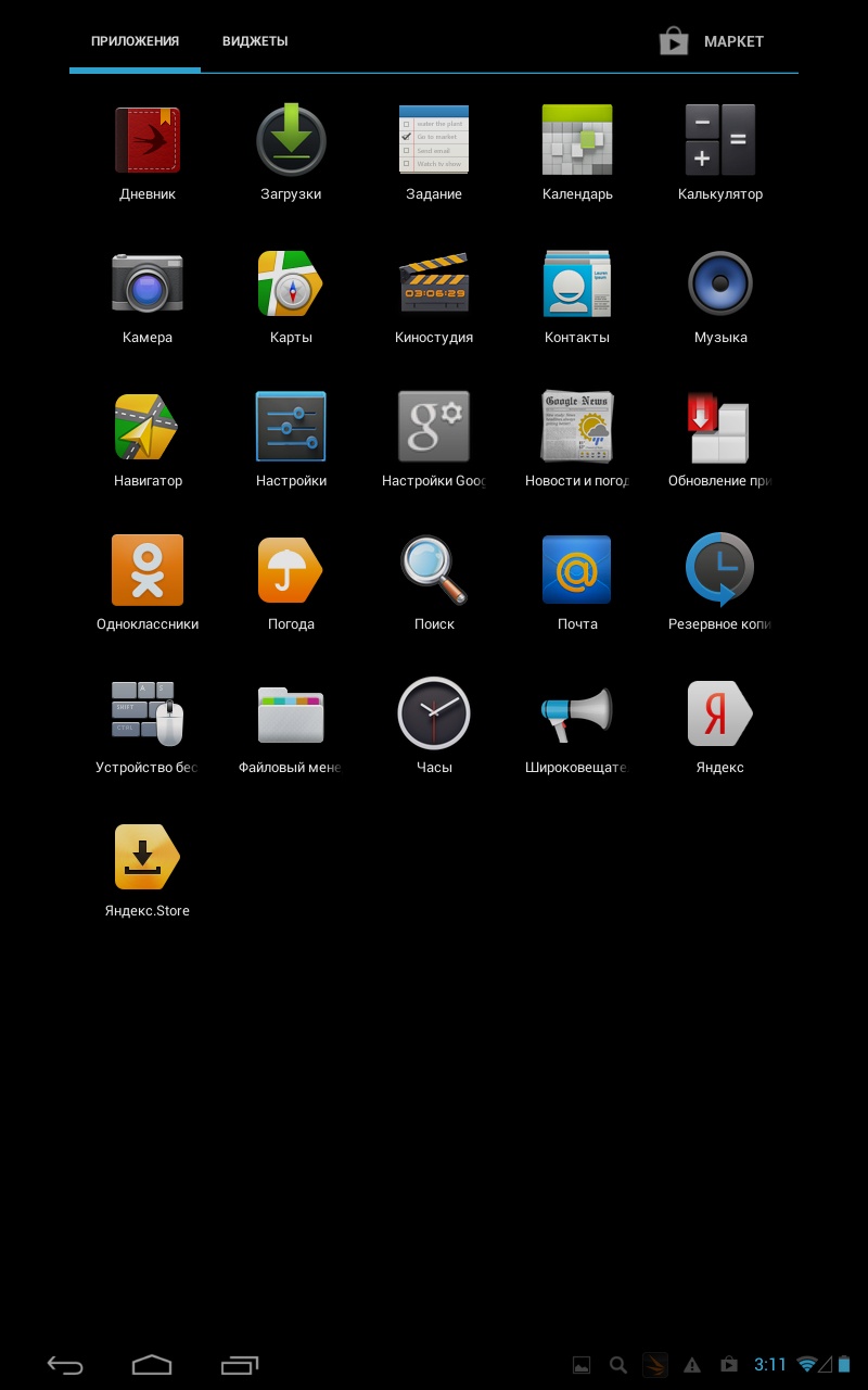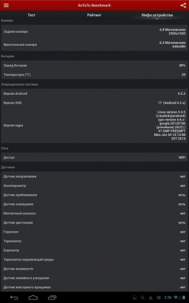 Работает планшет на базе операционной системы Android 4.2.2 с небольшими дополнениями в виде немного видоизмененной панели уведомлений от производителя.