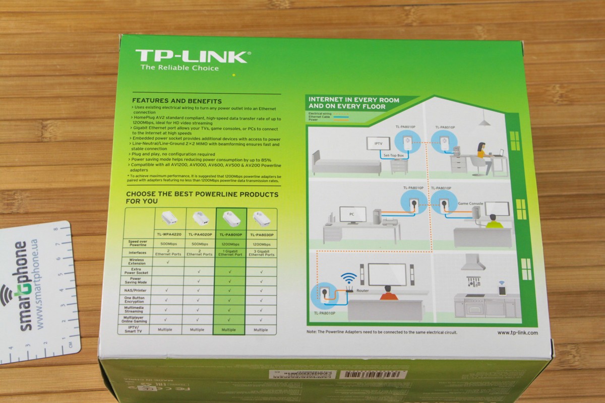 Обзор Powerline-адаптеров TP-Link TL-PA8010P: интернет через розеткуPowerline-адаптеры TP-Link TL-PA8010P AV1200 позволяют соединять устройства в локальной сети через обычные розетки. Таким образом, отпадает необходимость в прокладывании кабелей при подключении удаленных от Wi-Fi роутера гаджетов или тех, которые не имеют беспроводного модуля. Насколько легко настраиваются адаптеры, какую скорость передачи данных поддерживают и сколько стоят, можно узнать из нашего обзора. КорпусАдаптеры TP-Link TL-PA8010P AV1200 имеют габариты 131х72х42 мм. Производитель использовал глянцевый пластик белого цвета на лицевой части и матовый на боках и тыльной стороне. Сборка корпуса выполнена на очень высоком уровне. Даже если сильно потрясти устройство, вес которого больше, чем ожидаешь, внутри ничего не болтается и не трещит. Хотя чего еще можно ожидать от TP-Link, которая на рынке сетевого оборудования занимает более 60%. Из подвижных элементов на корпусе только кнопка Pair для поиска в электросети совместимого устройства. Световые индикаторы, которые размещены рядом, показывают текущий режим работы и наличие связей. При первом взгляде на обозреваемый Powerline-адаптер в первую очередь на себя обращает внимание розетка. Таким образом, обозреваемая модель не лишает нас разъема под электропитание, а просто добавляет функциональность в виде гигабитной Ethernet розетки. Выходная мощность встроенной розетки - до 16А. Как это можно использовать? Пример реального использованияПоставлена задача - подключить смарт-ТВ приставку к сети интернет через провод. На данный момент она соединена с глобальной сетью через Wi-Fi, но три двери и две бетонных стены не самым лучшим образом сказываются на итоговой скорости передачи. Максимум, что можно выжать из имеющейся ситуации, - стабильное отображение потокового видео в разрешении 480p, а хотелось бы минимум в HD, идеально в Full HD. А ведь локальная сеть была заведена в комнату в процессе ремонта в помещении, но ушлые рабочие где-то на середине пути повредили кабель. Реально ли недорого решить эту проблему? Ответ – Да! Это сделать реально, ведь приставка и роутер имеют порты Ethernet на 1 Гбит/с, провайдер заводит в квартиру Интернет на такой же скорости, а адаптеры TP-Link, которые у нас на тесте, способны обеспечить максимум в 1200 Мбит/с. Главное -все правильно подключить. 1. Открываем коробку и подключаем к сети один адаптер TL-PA8010 возле роутера. 2. Второе устройство из коробки задействуем возле смартТВ приставки. Как видно на фото ниже, наличие встроенной розетки - совсем не лишний функционал, ведь в нее можно подключить все ту же Android-приставку. 3. Соединяем Ethernet кабелем роутер и адаптер, а также приставку и адаптер. Шнуры есть в комплектации вместе с небольшой, но понятной инструкцией и диском. 4. Нажимаем кнопки спаривания на корпусе каждого адаптера и ожидаем, когда они свяжутся между собой. 5. Проверяем наличие сети интернет через локальное проводное подключение в конечном устройстве. Как видите, без необходимости прокладывания новых шнурков или установки повторителей наш вопрос решается. Хотя последние, это также вариант решения и это я понял, когда тестировал Wi-Fi удлинитель TP-LINK RE210. Так что польза от TP-Link TL-PA8010P, несомненно, есть. При этом масштабировать точки подключения просто - достаточно приобрести дополнительный адаптер. Для интересующихся более детально рассмотрим, как э