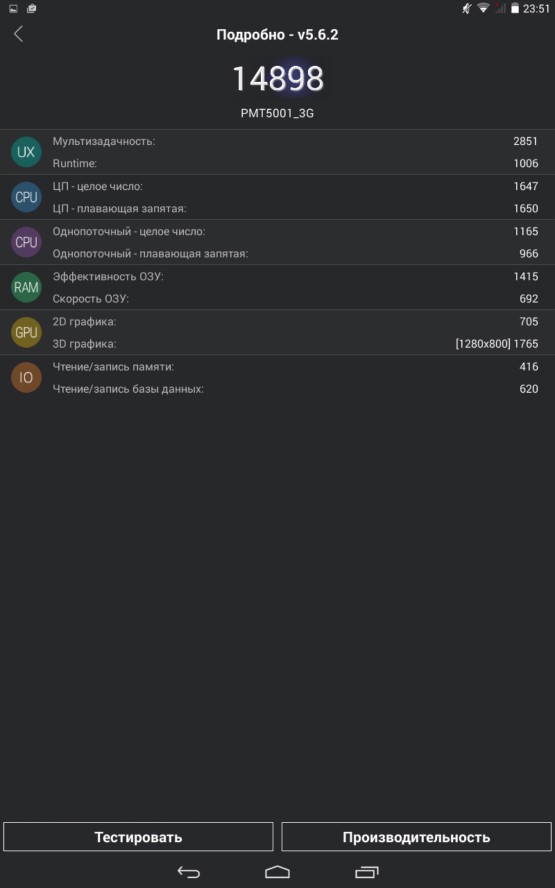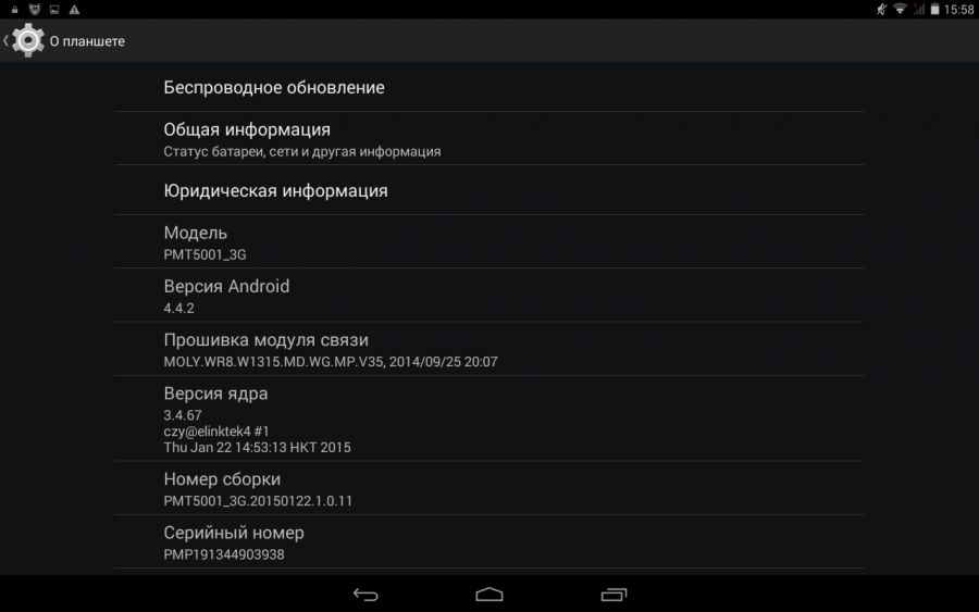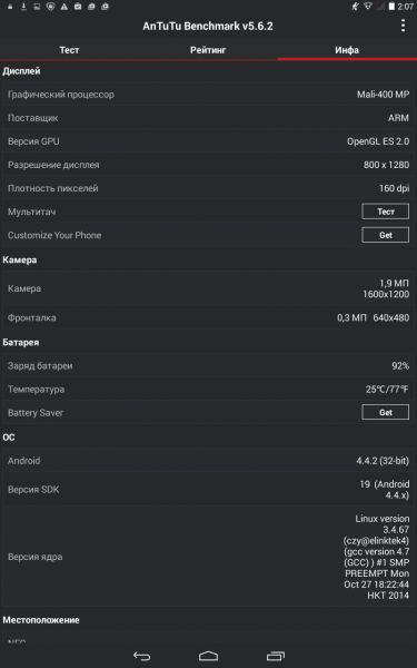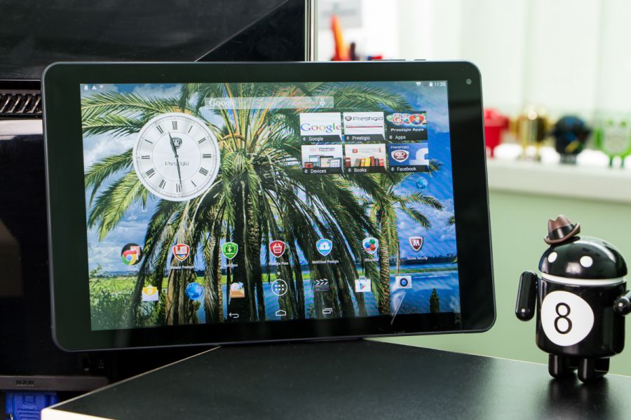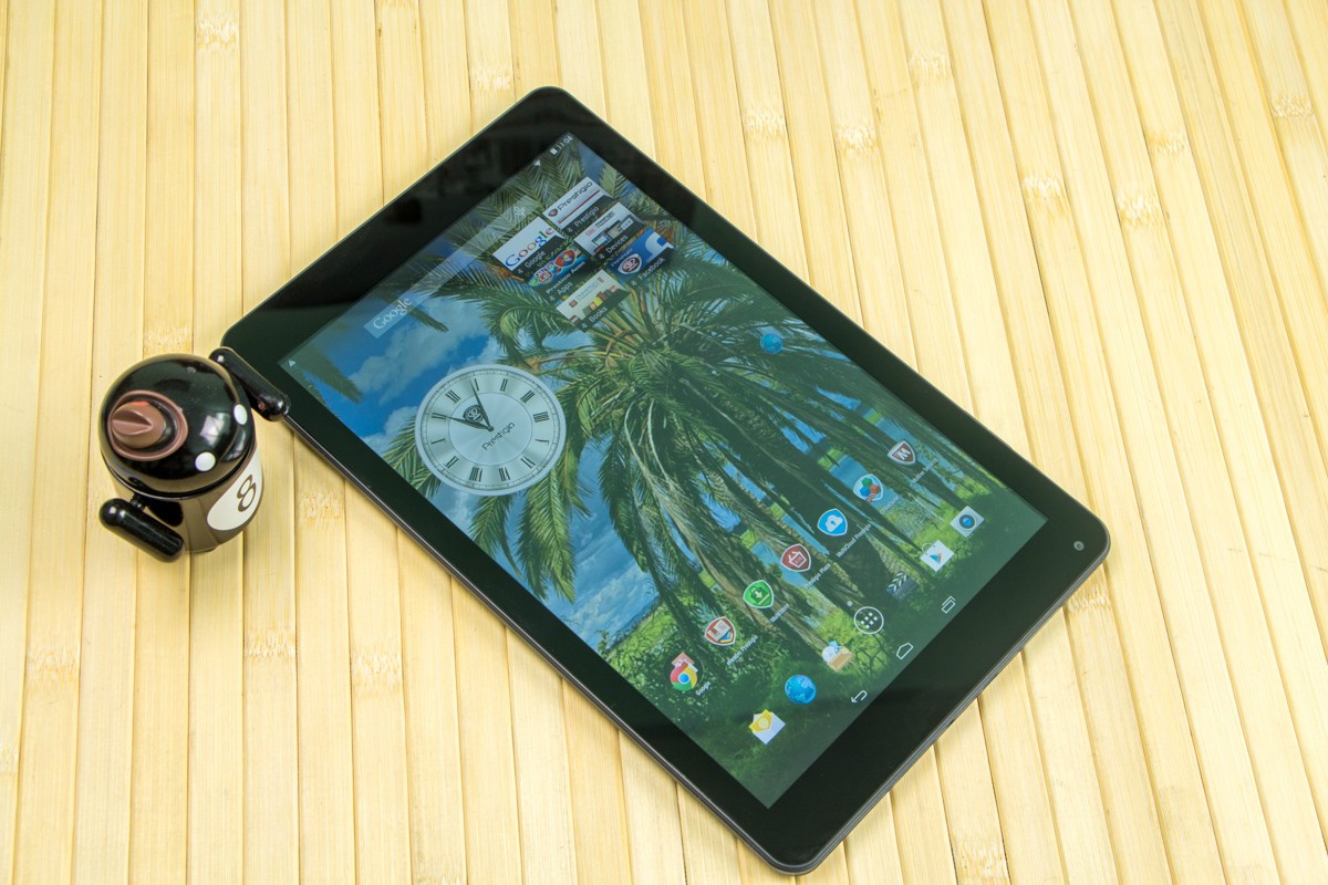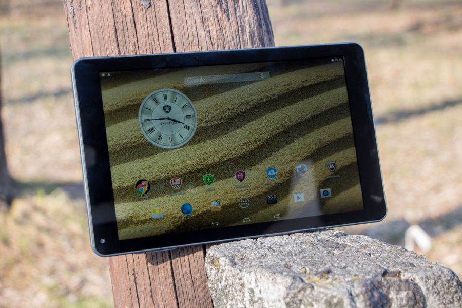 Дизайн и корпусТестируемый мультимедийный гаджет вобрал в себе все положительные характеристики, которыми стоит наделить внешний вид универсального планшета. В нем отсутствуют лишние и часто раздражающие цветные вставки, непонятные изгибы и другие дизайнерские “полезные” новшества. MultiPad MUZE 5001 доступен к заказу сразу в трех цветах. Можно выбрать темно-синий, как у нас, серый или черный. Корпус во всех трех случая из алюминия, лишь продолговатая крышка-заглушка, которая скрывает под собой слоты для SIM-карт и карт памяти, из пластика. Стоимость представленного выше комплекта на день публикации этого материала (03.05.2015) - 4555 грн, или по официальному курсу - $194. Фронтальная часть планшета - это только экран и черная рамка вокруг него, чтобы было куда примостить пальцы при его удерживании. Далее через малозаметную черную окантовку корпус переходит в алюминиевый торец, плавно перетекающий в тыльную часть. Она соответственно также металлическая. Острых углов в Prestigio MultiPad MUZE 5001 3G нет. Нужно признать, что стыковка всех панелей выполнена на высоком уровне. Даже пластик с металлом соединен без малейшего зазора. Экран в корпус утоплен плотно - ни одной портящей впечатление щели найти не удалось. На сдавливание и изгибы планшет реагирует вяло, то есть практически не гнется. И это однозначно хорошо. Переходим к функциональным элементам и начнем с лицевой стороны. Если держать планшет горизонтально, то в верхнем правом углу разместилась фронтальная камера. Выше нее непосредственно на ребре расположили кнопки питания и управления громкостью. Обе почти на миллиметр выступают над корпусом и удобно нажимаются. Ошибочное их срабатывание маловероятно, особенно если носить устройство в чехле. Рядом с кнопками предусмотрена прорезь для жесткого сброса - утопленная вглубь клавиша Reset. Нужно признать, что уже прошло больше месяца, как продолжается наш тест, а задействовать этот функционал так и не приходилось. Планшет работает стабильно. На нижнем торце Prestigio MultiPad MUZE 5001 3G никаких разъемов нет. С левой стороны - только винты крепления корпуса, а справа - 3,5 мм аудиовыход, микрофон и порт micro USB. Здесь же находится зазор для снятия крышки доступа к установке карт: двух формата mini SIM (стандартных) и одной microSD. Кстати, о последней. Официально заявлено о поддержке накопителей Micro SD/Micro SDHC объемом до 32 ГБ. На самом же деле устройство приняло карту и на 64 ГБ. Переходим к фронтальной части. В пластиковой крышке, о которой мы упоминали ранее, вырезано окошко под глазок основной камеры. По бокам от нее - информационные надписи, дабы сориентировать пользователя и случайно не спутать микрофон и кнопку сброс. С противоположной стороны - две прорези под мультимедийные динамики. За решеткой, утопленной вглубь, прячутся весьма громкие и качественные генераторы звука. Кромка корпуса вокруг них не окрашена и придает тыльной крышке пикантного блеска. ДисплейУстройство оснастили отличным как для своего ценника 10,1-дюймовым дисплеем. При разрешении 1280 х 800 пикселей (25.6 см в диагонали) и плотности 160 ppi картинка на экране выглядит живо и четко. При всем этом, благодаря использованию IPS LCD матрицы изображение яркое и насыщенное цветами. Отмечу, что смотреть фильмы в HD разрешении на тестируемом планшете одно из самых приятных занятий. В настройках дисплея можно выставить время перехо