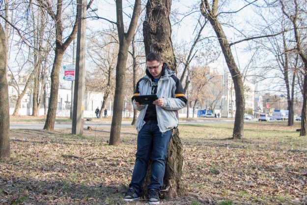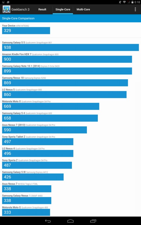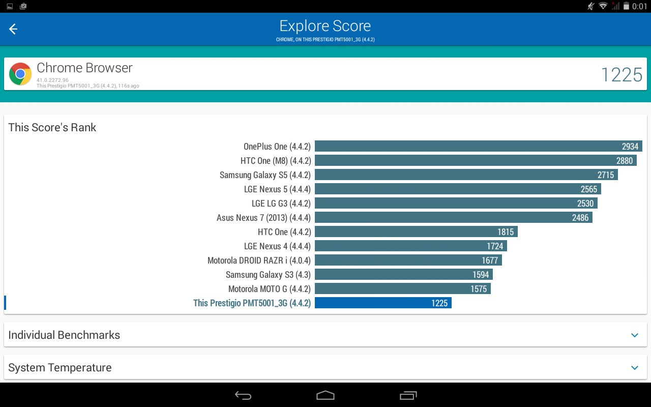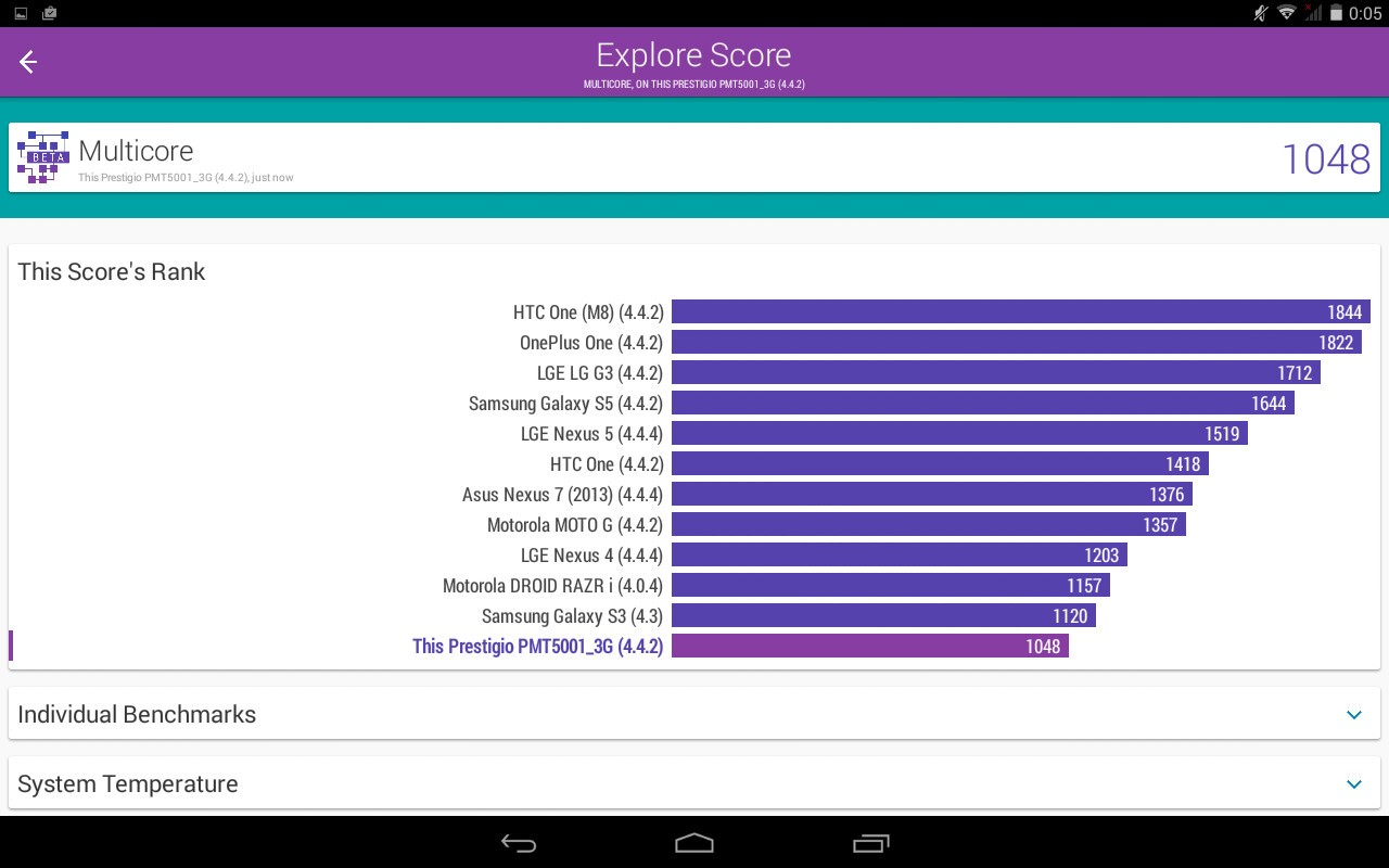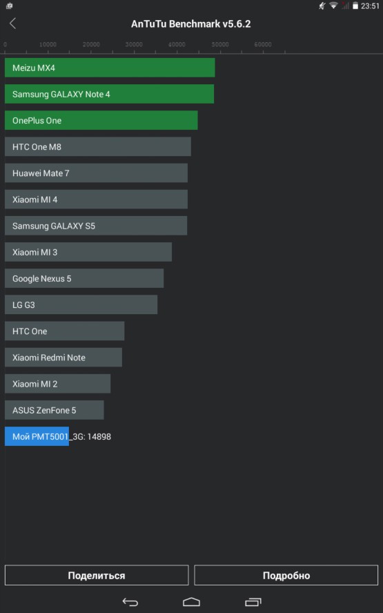 Дизайн и корпусТестируемый мультимедийный гаджет вобрал в себе все положительные характеристики, которыми стоит наделить внешний вид универсального планшета. В нем отсутствуют лишние и часто раздражающие цветные вставки, непонятные изгибы и другие дизайнерские “полезные” новшества. MultiPad MUZE 5001 доступен к заказу сразу в трех цветах. Можно выбрать темно-синий, как у нас, серый или черный. Корпус во всех трех случая из алюминия, лишь продолговатая крышка-заглушка, которая скрывает под собой слоты для SIM-карт и карт памяти, из пластика. Стоимость представленного выше комплекта на день публикации этого материала (03.05.2015) - 4555 грн, или по официальному курсу - $194. Фронтальная часть планшета - это только экран и черная рамка вокруг него, чтобы было куда примостить пальцы при его удерживании. Далее через малозаметную черную окантовку корпус переходит в алюминиевый торец, плавно перетекающий в тыльную часть. Она соответственно также металлическая. Острых углов в Prestigio MultiPad MUZE 5001 3G нет. Нужно признать, что стыковка всех панелей выполнена на высоком уровне. Даже пластик с металлом соединен без малейшего зазора. Экран в корпус утоплен плотно - ни одной портящей впечатление щели найти не удалось. На сдавливание и изгибы планшет реагирует вяло, то есть практически не гнется. И это однозначно хорошо. Переходим к функциональным элементам и начнем с лицевой стороны. Если держать планшет горизонтально, то в верхнем правом углу разместилась фронтальная камера. Выше нее непосредственно на ребре расположили кнопки питания и управления громкостью. Обе почти на миллиметр выступают над корпусом и удобно нажимаются. Ошибочное их срабатывание маловероятно, особенно если носить устройство в чехле. Рядом с кнопками предусмотрена прорезь для жесткого сброса - утопленная вглубь клавиша Reset. Нужно признать, что уже прошло больше месяца, как продолжается наш тест, а задействовать этот функционал так и не приходилось. Планшет работает стабильно. На нижнем торце Prestigio MultiPad MUZE 5001 3G никаких разъемов нет. С левой стороны - только винты крепления корпуса, а справа - 3,5 мм аудиовыход, микрофон и порт micro USB. Здесь же находится зазор для снятия крышки доступа к установке карт: двух формата mini SIM (стандартных) и одной microSD. Кстати, о последней. Официально заявлено о поддержке накопителей Micro SD/Micro SDHC объемом до 32 ГБ. На самом же деле устройство приняло карту и на 64 ГБ. Переходим к фронтальной части. В пластиковой крышке, о которой мы упоминали ранее, вырезано окошко под глазок основной камеры. По бокам от нее - информационные надписи, дабы сориентировать пользователя и случайно не спутать микрофон и кнопку сброс. С противоположной стороны - две прорези под мультимедийные динамики. За решеткой, утопленной вглубь, прячутся весьма громкие и качественные генераторы звука. Кромка корпуса вокруг них не окрашена и придает тыльной крышке пикантного блеска. ДисплейУстройство оснастили отличным как для своего ценника 10,1-дюймовым дисплеем. При разрешении 1280 х 800 пикселей (25.6 см в диагонали) и плотности 160 ppi картинка на экране выглядит живо и четко. При всем этом, благодаря использованию IPS LCD матрицы изображение яркое и насыщенное цветами. Отмечу, что смотреть фильмы в HD разрешении на тестируемом планшете одно из самых приятных занятий. В настройках дисплея можно выставить время перехо