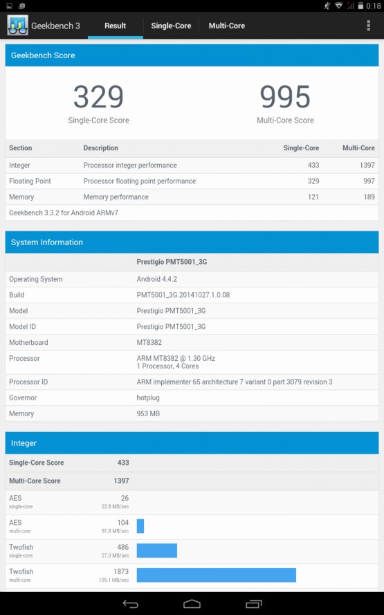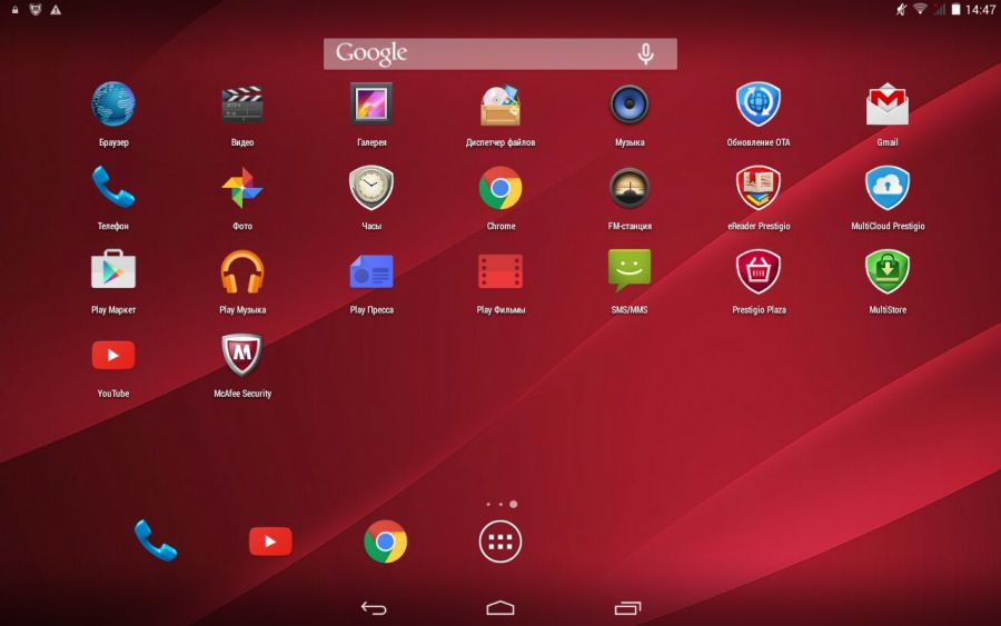 Основным и наиболее часто используемым соединением, конечно, выступает Wi-Fi. Устройство поддерживает интерфейс 802.11b/g/n. Беспроводное подключение к роутеру по WI-Fi стабильно, без разрывов. Проверено и на офисной, и на домашней Сети. В различных торговых центрах и кафе проблем с подключением также не было. Bluetooth - второй, но не менее важный интерфейс, который поддерживается тестируемым устройством. В нашем случае используется версия Bluetooth 4.0. Это позволяет легко подключать к планшету внешние устройства, например, беспроводные наушники. Ну а теперь о самом интересном. Аппаратная начинка MultiPad MUZE 5001 3G предусматривает возможность использования в нем сразу двух SIM-карт стандартного размера. Устройство поддерживает 3G-подключение на скоростях до 21 Мбит/с при скачивании, и 5,76 Мбит/c при загрузке в Сеть. Для пользователей из Украины это важный нюанс, так как уже в ближайшие месяцы наш ждет полноценно внедрение сетей третьего поколения. Работа в режиме телефонаПланшет Prestigio MultiPad MUZE 5001 3G - это помимо мультимедиа еще и коммуникационный «комбайн». Наличие слота под две SIM-карты делает из него универсального и экономного помощника, который гарантированно будет на связи, даже если один из ваших мобильных операторов потеряет свою Сеть. Вставленная карта 3G-оператора обеспечивала доступность владельца тестируемого планшета для видеоконференций и чатов в любое время и практически в любом месте города Киева. Для установки доступна масса приложений, среди которых Skype, Viber и др. Но не Интернетом единым. Отлично справляется MultiPad MUZE 5001 3G и с телефонными звонками. Планшет не рассчитан на то, что при разговоре его будут держать возле уха как смартфон. Он большой, да и разговорный динамик не предусмотрен. В тихой домашней обстановке можно комфортно общаться через мультимедийные динамики. В шумных местах, кафе или транспорте удобнее все-таки пользоваться гарнитурой. Количество настроек в меню SIM-карт не уступает таковым в смартфонах Prestigio. Пользователь может задать приоритетную карту для голосовых- и видеовызовов, отправки текстовых сообщений, передачи данных. Каждой симке разрешается установить имя и цветовую гамму. Операционная система и приложенияПланшет Prestigio MultiPad MUZE 5001 3G из коробки получил операционную систему Android 4.4.2. Это не самая последняя версия операционки Google, но работает она стабильно и за месяц теста не дала ни малейшего повода усомниться в себе. Первое включение устройства показало, что количество предустановленных приложений покрывает лишь минимальные запросы пользователя. Так что первым делом открываем Google Play и качаем программы, игры по своему вкусу. Из того, что производитель предлагает сразу: Браузер, Музыка, приложение Телефон, Видео, Диспетчер файлов и др. Из сервисов Google доступны Gmail, YouTube, Play Музыка/Фильмы/Игры. По части фирменных приложений отметим MultiStore, eReader Prestigio и MultiCloud Prestigio, которое позволит бесплатно хранить в облаке до 250 ГБ личной информации. Ну и конечно, есть приложение для загрузки обновлений через беспроводные сети. Называется оно «Обновление OTA». Советуем запускать его хоть иногда, потому что производитель постоянно обновляет выпускаемые гаджеты. Работа в режиме навигатораТестируемый нами планшет Prestigio MultiPad MUZE 5001 3G в обязательном порядке получил встроенный чип GPS. Функция эта полезна и домашним пользователям, которые лишь 
