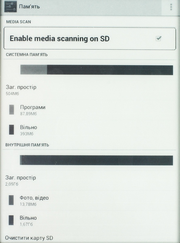Главными «пожирателями» заряда на практике стали активное Wi-Fi-соединение, воспроизведение MP3, ну и использование самой ОС Android – как итог подзарядка каждые 2-3 дня. В режиме только чтения  - батареи вполне хватает на неделю.
