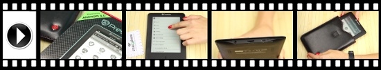 В стандартную комплектацию, помимо самого ридера, входит блок питания, кабель micro-USB/USB, краткое руководство пользователя с гарантийным талоном, а также фирменный черный чехол-карман "под кожу" со строчкой красного цвета по всему периметру.
