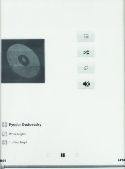 По качеству звучания в хороших «ушах» ридер не уступит плееру или смартфону бюджетного сегмента. Громкости мультимедийного динамика хватает для комфортного прослушивания музыки и аудиокниг даже в шумном месте.