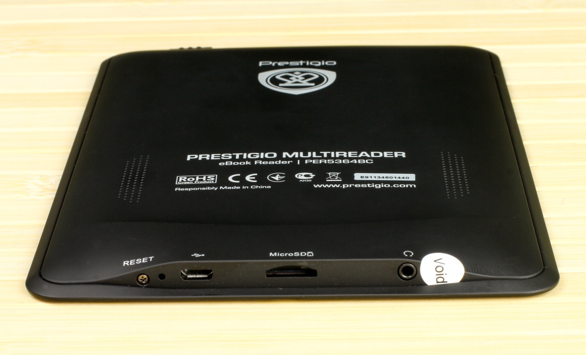 Производитель новаторски подошел к дизайну Prestigio MultiReader PER5364BC – в результате перед нами ультратонкий ридер с максимально зауженными, почти острыми, краями. Самое тонкое место здесь — грань около разъемов.