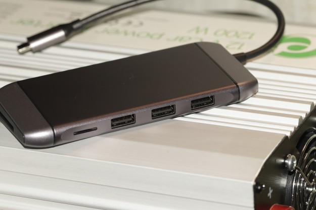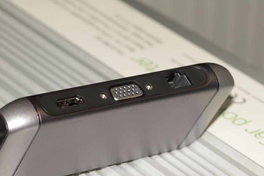 Впечатления от сборки Корпус металлический. Да, есть и пластиковые вставки, и они классно дополняют металл, нисколько не являясь при этом «слабыми звеньями», ведь с качеством их «посадки» на металлический каркас нет абсолютно никаких проблем. Пластиковые окантовки в местах сужений корпуса на первый взгляд выглядят как светодиоды, хотя на деле это лишь элементы декора. Еще одним приятным моментом мы бы назвали цельный алюминиевый каркас – это большой плюс к сборке. Длина кабеля – 15 сантиметров. У него превосходная полимерная оплетка, а кроме того, предусмотрены предохранители от перегибов на стыках. Дизайн и эргономика Практически полностью металлический REAL-EL CQ-900 наверняка понравится, в том числе, владельцу дорогого статусного ноутбука, ведь здесь не только удачная игра красок, но и в том числе материалов корпуса и даже форм-фактора. Положите этот адаптер с вашим лэптопом - всего нескольких секунд будет достаточно, чтобы убедиться в справедливости сказанных нами слов. Верхняя и нижняя металлические панели “приютили” у себя логотип и эмблему производителя, а также метки портов и разъемов на ребрах. На одном из торцов выведен кабель USB Type-C. Рядом с ним соответствующий порт. На противоположной части расположен слот для карт SD. Суженное металлическое ребро примечательно тремя портами USB и слотом для карт microSD. На противоположном ребре - порт RJ45, а также интерфейсы VGA и HDMI. Возможности при подключении к ПК С подключением к соответственному порту ПК нет абсолютно никаких проблем – специальные знания или дополнительное программное обеспечение не требуется. Ниже несколько наиболее примечательных результатов тестирования: