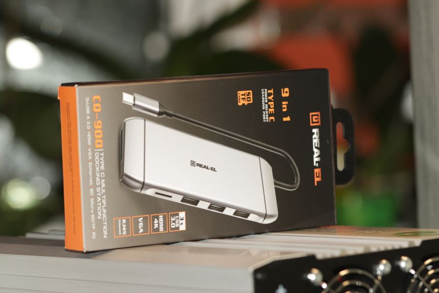 Обзор REAL-EL CQ-900 – способен подключить все!Интересное предложение от бренда REAL-EL, при помощи которого к вашему ПК или смартфону/планшету можно подключить одновременно 6 различных аксессуаров, кабель витую пару, а также две карты памяти. В этом обзоре мы поговорим о потенциальной аудитории такого рода решений, стабильности работы под максимальными нагрузками, а также сборке и дизайне. Комплектация и упаковка Комплект поставки мультифункциональной док-станции дополнен руководством по эксплуатации, а также гарантийным талоном.