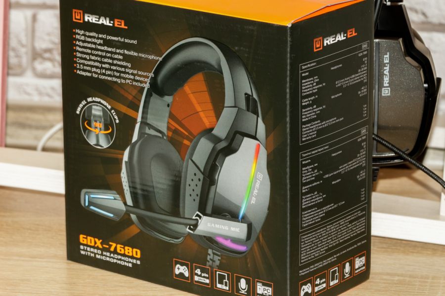 Обзор REAL-EL GDX-7680 – 29-долларовая гарнитура с изменяющейся подсветкой и хорошим звукомНе так давно к нам в редакцию приехала новая гарнитура от эстонского бренда REAL-EL. В пользу выбора данной модели производитель называет небольшую стоимость устройства, хорошее качество звука, интересный дизайн и разноцветную подсветку. Мы проверили, как обстоят дела на самом деле, и стоит ли рекомендовать новинку. Комплектация и упаковка Знакомиться начнем традиционно – с осмотра комплекта поставки. Внутри коробки пользователя ждут следующие вещи: