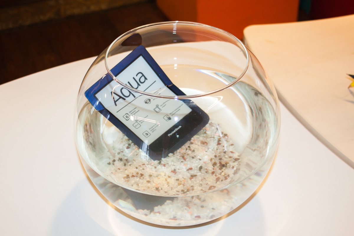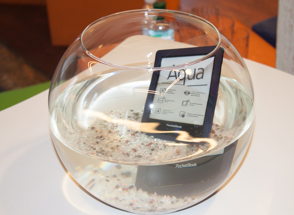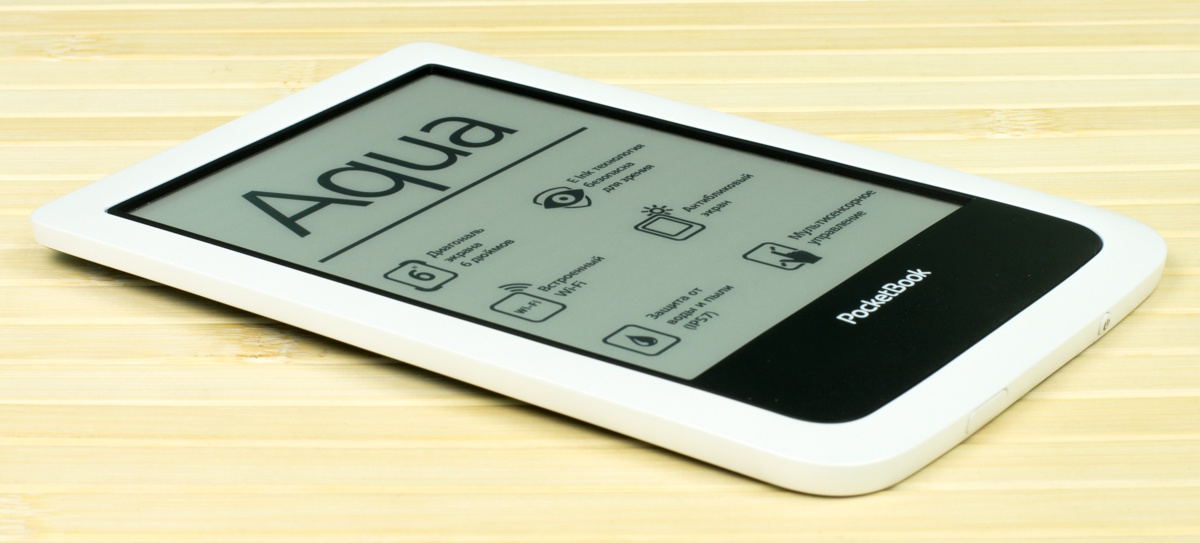 PocketBook Aqua - первый ридер компании да и вообще первое подобное решение в мире, которое получило защиту корпуса от воды и пыли.