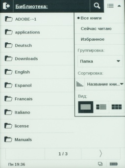 Доступ ко всей имеющейся в устройстве литературе обеспечивается из подменю «Библиотека». Здесь весь контент разделен по папкам, название которых прямо «подсказывает» о характере того или иного материала.