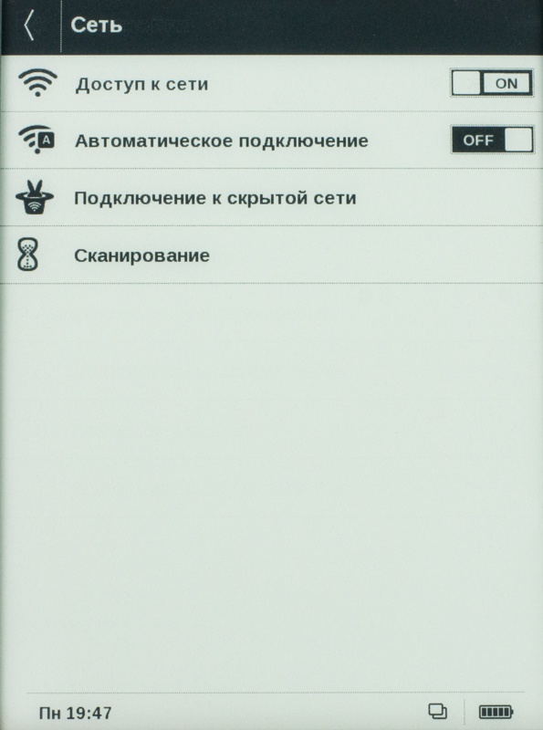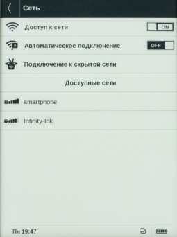 Ридер PocketBook Aqua получил модуль Wi-Fi 802.11 b/g/n. Среди настроек последнего стоит отметить возможность автоматического подключения, подключение к скрытой сети и пр.