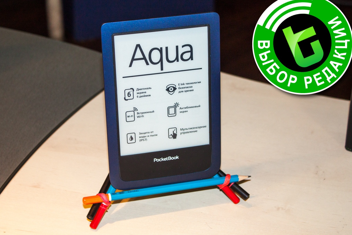В конечном итоге при ценнике в $150 PocketBook Aqua - один из лучших ридеров на сегодня на украинском рынке. Помимо ключевого преимущества совершенно над всеми решениями конкурентов - защиты от воды и пыли, модель предлагает хорошую автономность, удачную эргономику, отличное быстродействие системы, поддержку всех популярных форматов электронных книг и очень «вкусную» стоимость за все это. Учитывая сказанное, по итогам тестирования мы присудили новинке нашу высшую редакционную награду «Выбор редакции»!