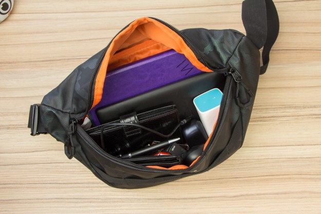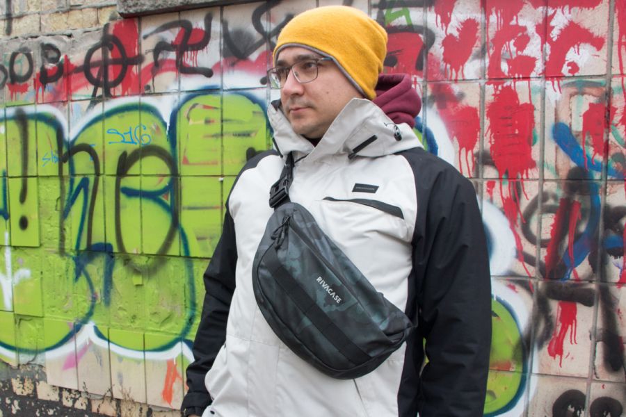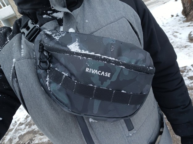 Обзор RIVACASE 7614 - вместительная поясная/слинг сумка в стиле милитариВ этом обзоре рассказываю про свою небольшую, но вместительную и практичную сумку RIVACASE 7614. Я выбрал ее сам, долго искал именно такой формат и такой размер. Почему и зачем рассказываю дальше. Зачем мне такая сумка? RIVACASE 7614 - это формат сумки слинг или поясной сумки для хранения и переноски мобильных устройств. По крайней мере так ее использую я, потому со мной почти всегда мой и еще один тестовый смартфон, мои и еще одни тестовые беспроводные наушники, павербанк, пара кабелей для зарядки гаджетов, а иногда еще планшет или электронная книга. Ключи, кошелек и документы часто также путешествуют со мной. Распихивать все перечисленное по карманам не вариант, все равно всего не унесешь. Рюкзак – слишком громоздко, беру его только когда нужен ноутбук. А значит вместительная поясная сумка слинг - выход из ситуации. Дизайн RIVACASE 7614 – сумка в стиле милитари. Черный цвет сочетается с темно-зеленым, но при определенном освещении он выглядит синеватым. Ткань немного блестит и переливается. Расцветка выглядит очень интересно и необычно, особенно в сочетании с оранжевым цветом внутренней подкладки. Логотип разместили по центру и нанесли его серебристым цветом. Под лого элементы из военной тематики - нашитые лесенкой прочные нейлоновые стропы. Это универсальное крепление MOLLE, которое используют в армии для жесткого крепления подсумков, кобур, ножен, фонариков и др. полезной мелочевки. На молнии переднего кармана задействовали две застежки. На каждую добавили удобные пуллеры для быстрого доступа к содержимому. Ширина поясного ремня – 37 мм. Длина регулируется от 55 см до 100 см. Ослабить или затянуть его несложно. Пряжка шириной 5 см из пластика, выглядит прочной и надежной. Вес сумки 190 г. Внешние размеры: 340х160х100 мм. Материалы Сумка RIVACASE 7614 сшита из водоотталкивающей ткани с полиуритановым ламинированием. На простом языке это означает, что в процессе обработки полиэстера на его поверхность нанесли тончайший слой полиуретановой пленки. Через молнию влага также не попадает быстро, она прикрыта тканью. Внутренние швы ровно и аккуратно прошиты. Вместительность Внутри сумки покупателю предлагается три отделения. Два скрыты за видимым для всех замком спереди, еще одно на молнии скрыто позади. Основное отделение объемное. Здесь в основном и хранятся все мои вещи и устройства. Опишу этот раздел так – при необходимости в него можно без особого труда уложить стандартную полукилограммовую коробку почтового оператора или игровую гарнитуру. Для ключей добавили съемный карабин. Он удобен, потому что, открыв сумку и не заглядывая в нее, сразу знаешь где их искать. В большом отделе находится дополнительный карман на молнии. Его уместно использовать для документов кошелька – ценных вещей. Но я туда кладу тестовый смартфон, чтобы он не соприкасался с другими вещами и не поцарапался. На задней стенке сумки разместили самый скрытый от внешних глаз карман. Когда сумка висит на плече и на поясе, молнии этого отдела посторонним не видно. В этом отделе я обычно ношу свой смартфон и кошелек. Достаточно ли трех отделов? Да, но еще пара отделений в основном отсеке не помешала бы. Вывод RIVACASE 7614 – точно моя сумка на ближайший год. Три недели она уже у меня, использую ее ежедневно и на ней нет еще ни одного признака