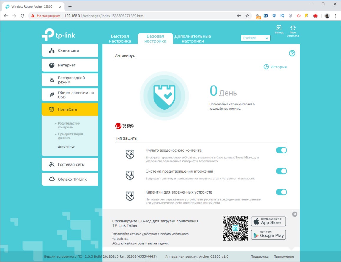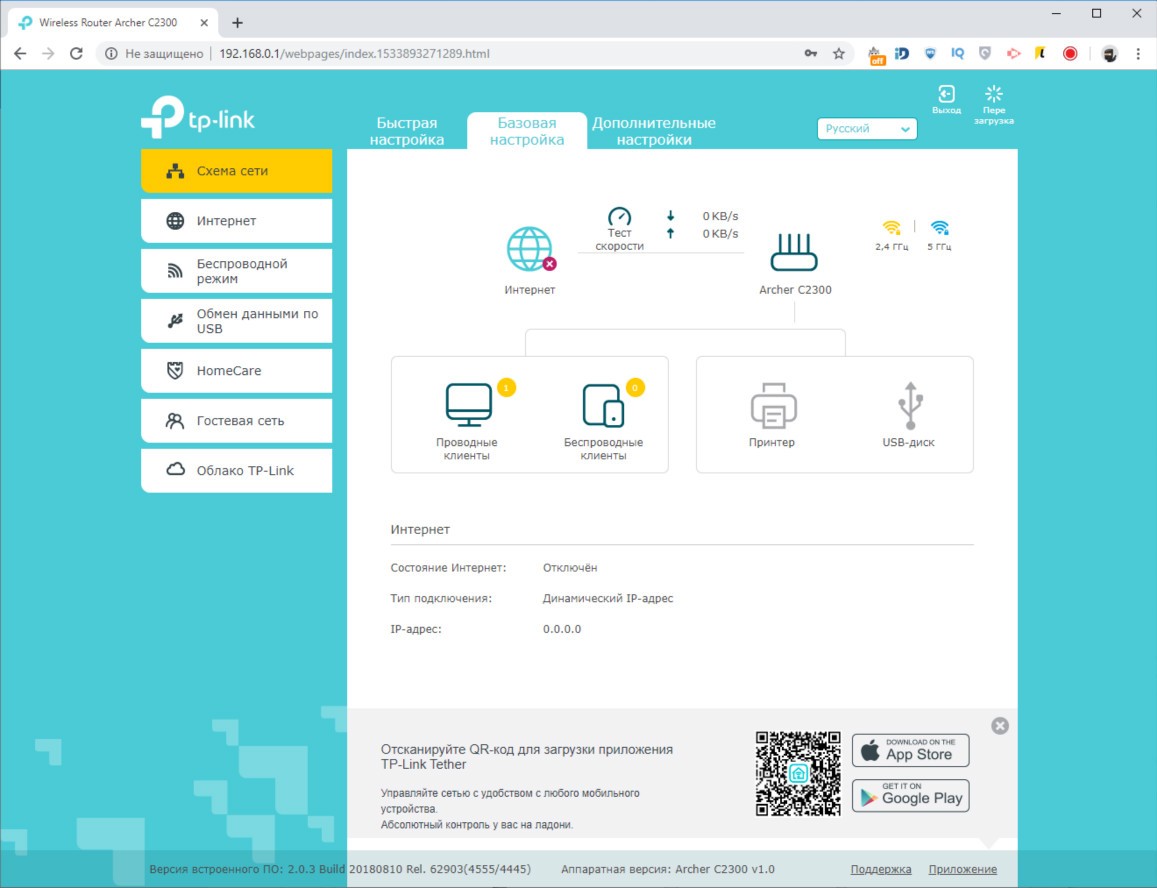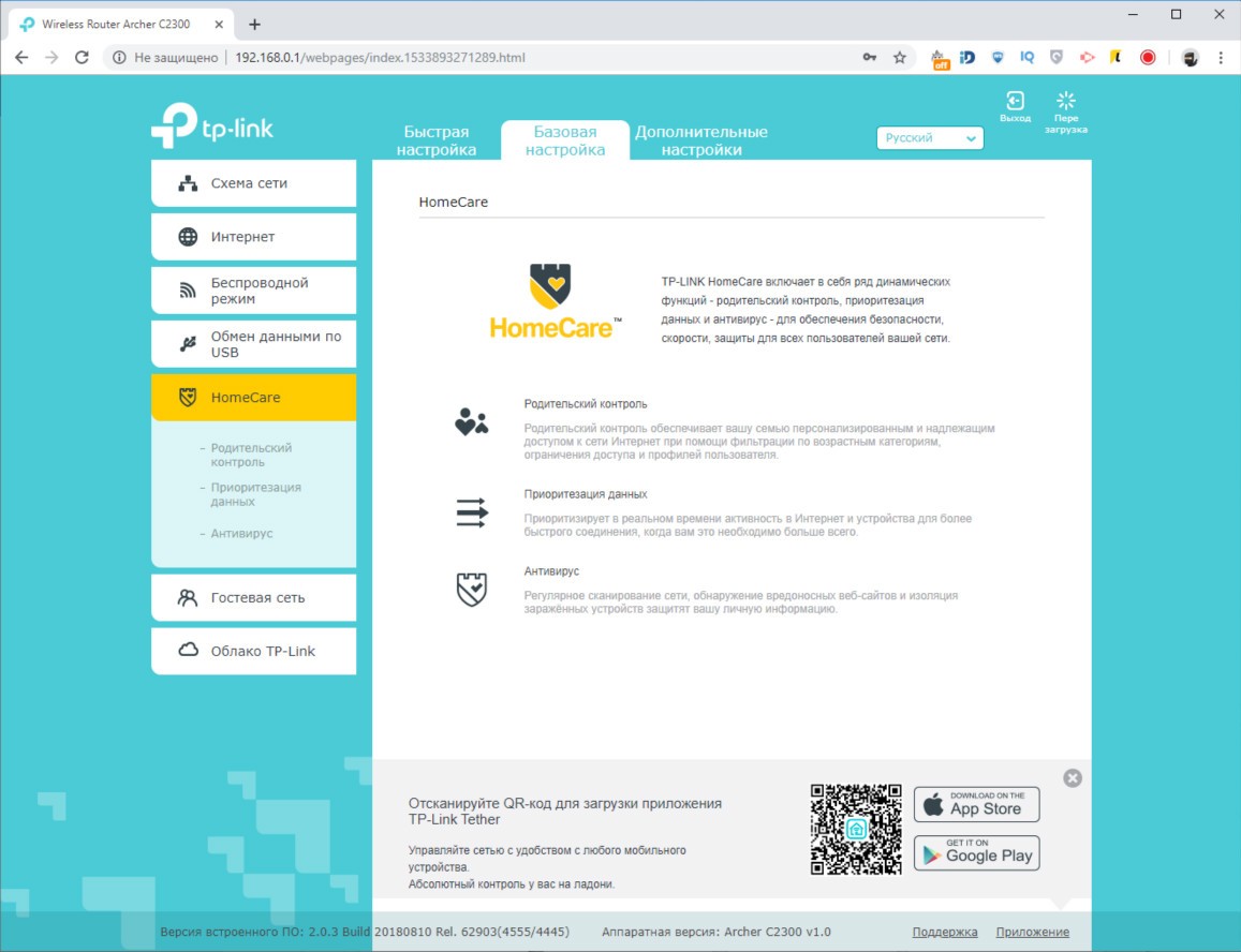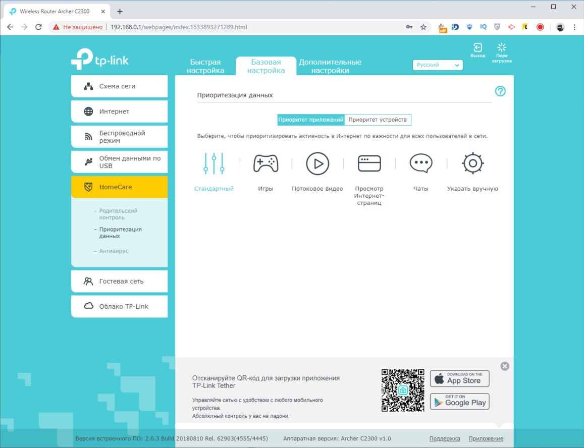 Обзор роутера TP-Link Archer C2300: универсальный, быстрый и компактныйВнешность роутера TP-Link Archer C2300 простая, но скрывает под собой очень технологичную аппаратную начинку, за которую покупателю нужно заплатить 4499 грн. Это много, но оправданно. Из обзора узнаете почему. Дизайн и корпус Первое, чем обратил на себя внимание Archer C2300 – решеткой для отвода тепла в половину верхней крышки. Вторая половина из черного глянца. Нижняя крышка само-собой вся в прорезях для вентиляции. На ней предусмотрено четыре прорезиненных ножки и два ушка для крепления на стене. Габариты модели C2300 - 216 x 164 x 36,8 мм, вес 620 г. Устройство компактное, просмотрев конкурентов не нашел схожего по размерам с аналогичным набором функций. Так что со скрытым размещением роутера проблем не будет. Маршрутизатор без труда найдет свое место на полке, стене и даже столе, если в этом ест необходимость. Индикаторы режимов вынесены между решетками сверху. Всего их 8, они крупные и понятные. Подсветка светло-голубого цвета, при этом ее можно отключить, нажав на длинную серебристую клавишу. Ее трудно не заместить из-за яркого белого индикатора. На тыльной стороне расположили кнопку включения/выключения, порт WAN 10/100/1000 Мбит/с и четыре порта LAN 10/100/1000 Мбит/с. Как видите, максимальная скорость 1000 Мбит/с, чего хватает на онлайн просмотр 4K видео и игр в высоком разрешении на удаленных серверах. На левом боку, что очень удобно, разместили порты USB 2.0 и USB 3.0 для подключения накопителей или принтера. От них можно заряжать смартфон и другие мобильные гаджеты. Тут же переключатель Reset, который утопили в корпус. Рядом с ним кнопка WPS для быстрого подключения и переключатель для активации работы Wi-Fi на маршрутизаторе. В целом TP-Link Archer C2300 – это компактный корпус с хорошо подобранными материалами, удобным расположением портов и кнопок управления, а также сборкой без нареканий. Аппаратная начинка Внутри TP-Link Archer C2300 инженеры использовали 2-ядерный чипсет Broadcom BCM4365E, работающий на частоте 1,8 ГГц. Он гарантирует стабильную работу в двух диапазонах (802.11b/g/n 2,4 ГГц и 802.11ac/n/a 5 ГГц). Внутри 512 МБ оперативной памяти и 128 МБ флэш памяти, которые обеспечивают скорость до 600 Мбит/с на частоте 2,4 ГГц и 1625 Мбит/с на частоте 5 ГГц. Данные передаются по трем независимым полосам. На программном уровне реализован механизм определения приоритетов и распределения полос пропускания. Чип Broadcom, благодаря технологии модуляции NitroQAM, способен повысить скорость передачи до 25% за счет сжатия данных на доступных частотах. В интенсивном режиме работы, из-за большого количества вычислений, корпус нагревается. Критично? Нет, главное установить роутер на твердой поверхности и обеспечить достаточную минимальный приток воздуха. Производительность Выбранный производителем чипсет поддерживает технологию MU-MIMO и умеет формировать луч в наиболее приоритетном для пользователя направлении. В совокупности с имеющимися аппаратными ресурсами, модель Archer C2300 показала лучший результат из всех роутеров, которые были у меня на обзоре. TP-Link Archer C5400, обозреваемый год назад, в расчет не берем – он намного дороже. Физику не отменяли, так что отдаляясь от роутера снижается скорость беспроводного подключения. Ноутбук Lenovo Yoga C930 (81C400QBRA) выдал максимальную скорость в 740 Мбит/с. За бетонной стеной и стеклянной дверью скорость снижается до 590 Мбит/с. Переместившись еще н