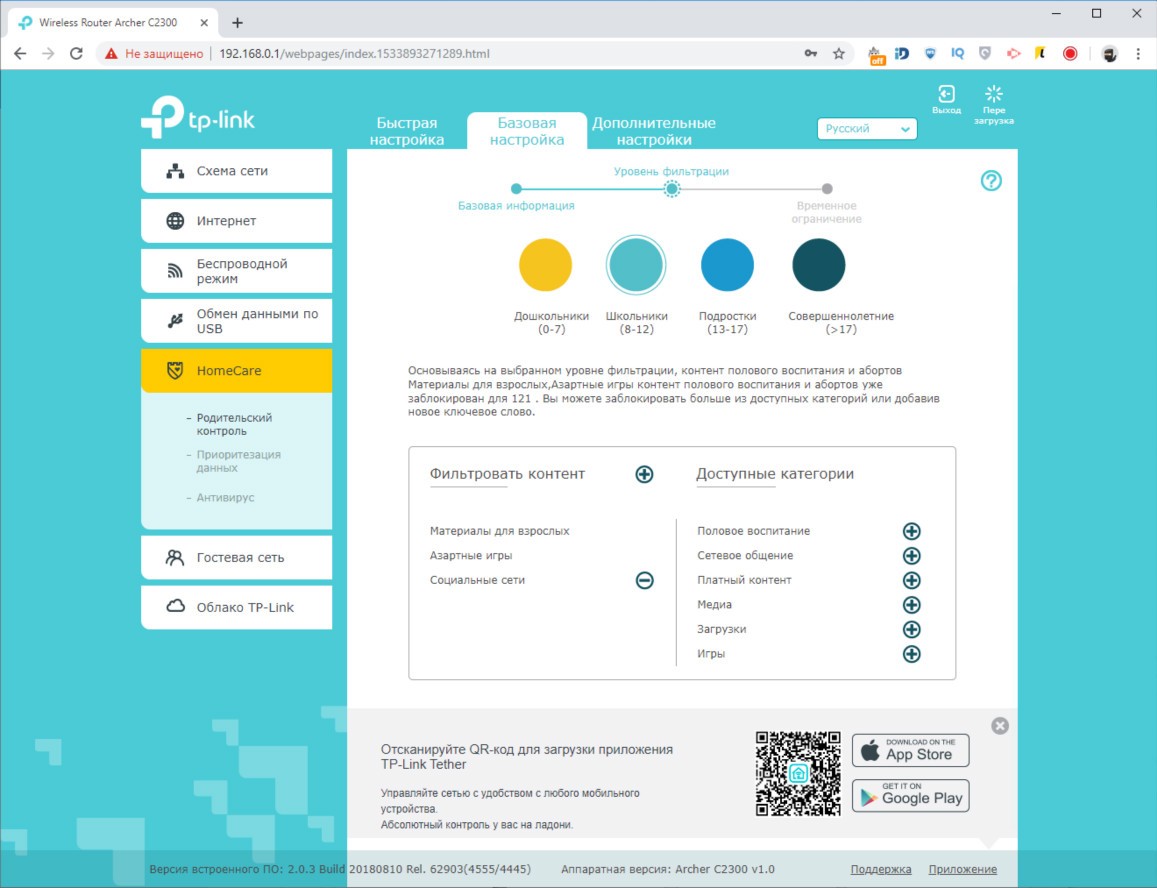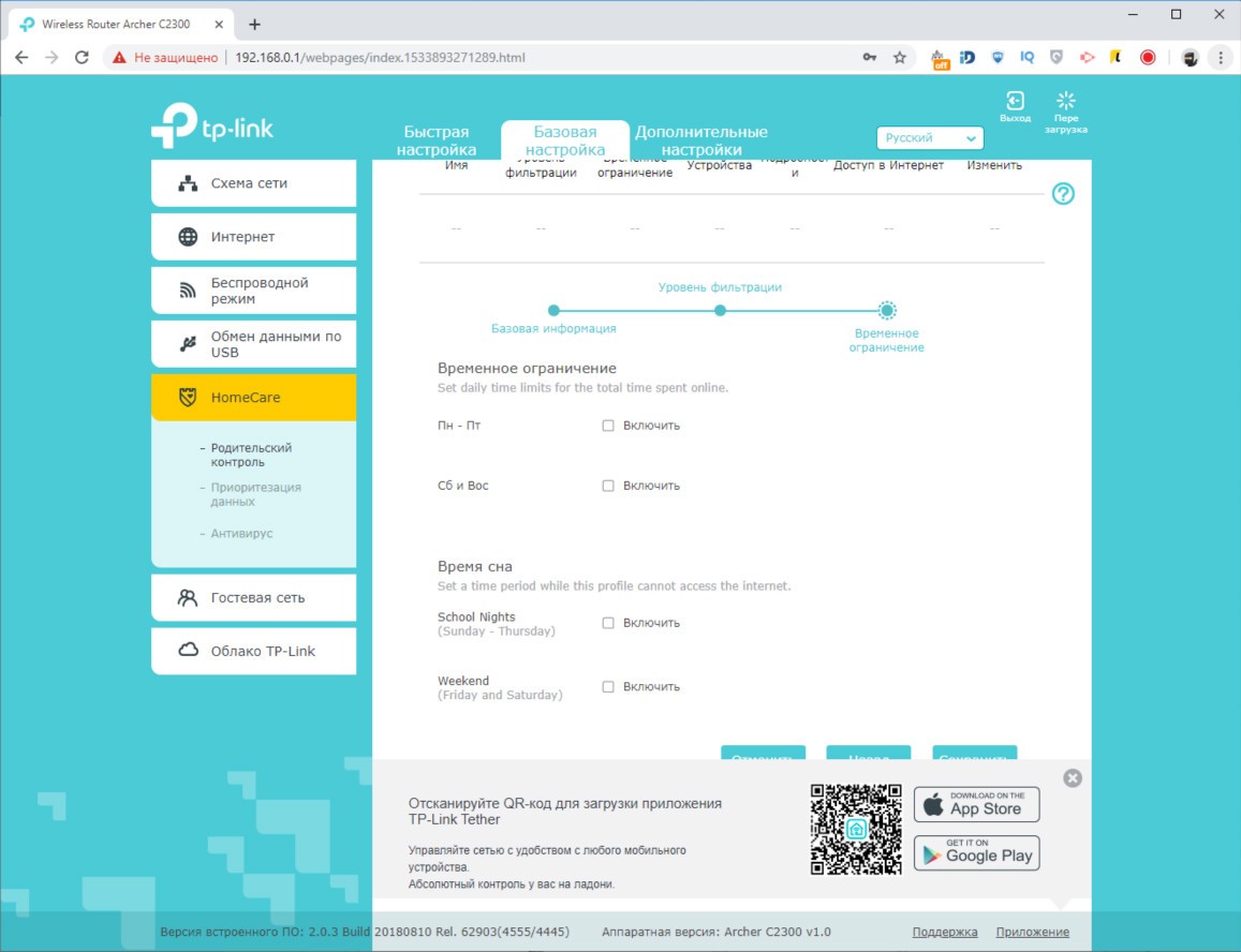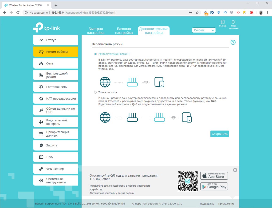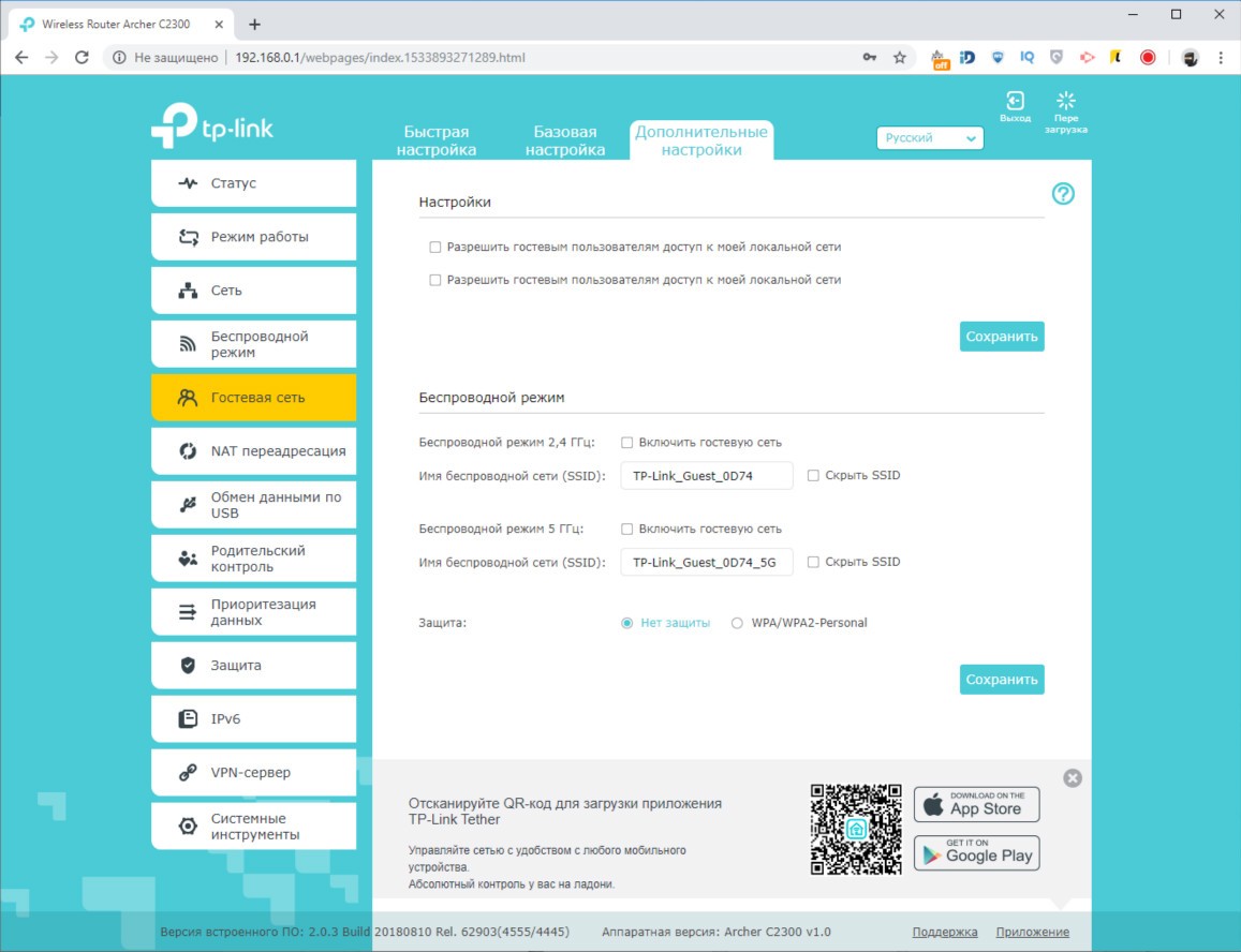 Обзор роутера TP-Link Archer C2300: универсальный, быстрый и компактныйВнешность роутера TP-Link Archer C2300 простая, но скрывает под собой очень технологичную аппаратную начинку, за которую покупателю нужно заплатить 4499 грн. Это много, но оправданно. Из обзора узнаете почему. Дизайн и корпус Первое, чем обратил на себя внимание Archer C2300 – решеткой для отвода тепла в половину верхней крышки. Вторая половина из черного глянца. Нижняя крышка само-собой вся в прорезях для вентиляции. На ней предусмотрено четыре прорезиненных ножки и два ушка для крепления на стене. Габариты модели C2300 - 216 x 164 x 36,8 мм, вес 620 г. Устройство компактное, просмотрев конкурентов не нашел схожего по размерам с аналогичным набором функций. Так что со скрытым размещением роутера проблем не будет. Маршрутизатор без труда найдет свое место на полке, стене и даже столе, если в этом ест необходимость. Индикаторы режимов вынесены между решетками сверху. Всего их 8, они крупные и понятные. Подсветка светло-голубого цвета, при этом ее можно отключить, нажав на длинную серебристую клавишу. Ее трудно не заместить из-за яркого белого индикатора. На тыльной стороне расположили кнопку включения/выключения, порт WAN 10/100/1000 Мбит/с и четыре порта LAN 10/100/1000 Мбит/с. Как видите, максимальная скорость 1000 Мбит/с, чего хватает на онлайн просмотр 4K видео и игр в высоком разрешении на удаленных серверах. На левом боку, что очень удобно, разместили порты USB 2.0 и USB 3.0 для подключения накопителей или принтера. От них можно заряжать смартфон и другие мобильные гаджеты. Тут же переключатель Reset, который утопили в корпус. Рядом с ним кнопка WPS для быстрого подключения и переключатель для активации работы Wi-Fi на маршрутизаторе. В целом TP-Link Archer C2300 – это компактный корпус с хорошо подобранными материалами, удобным расположением портов и кнопок управления, а также сборкой без нареканий. Аппаратная начинка Внутри TP-Link Archer C2300 инженеры использовали 2-ядерный чипсет Broadcom BCM4365E, работающий на частоте 1,8 ГГц. Он гарантирует стабильную работу в двух диапазонах (802.11b/g/n 2,4 ГГц и 802.11ac/n/a 5 ГГц). Внутри 512 МБ оперативной памяти и 128 МБ флэш памяти, которые обеспечивают скорость до 600 Мбит/с на частоте 2,4 ГГц и 1625 Мбит/с на частоте 5 ГГц. Данные передаются по трем независимым полосам. На программном уровне реализован механизм определения приоритетов и распределения полос пропускания. Чип Broadcom, благодаря технологии модуляции NitroQAM, способен повысить скорость передачи до 25% за счет сжатия данных на доступных частотах. В интенсивном режиме работы, из-за большого количества вычислений, корпус нагревается. Критично? Нет, главное установить роутер на твердой поверхности и обеспечить достаточную минимальный приток воздуха. Производительность Выбранный производителем чипсет поддерживает технологию MU-MIMO и умеет формировать луч в наиболее приоритетном для пользователя направлении. В совокупности с имеющимися аппаратными ресурсами, модель Archer C2300 показала лучший результат из всех роутеров, которые были у меня на обзоре. TP-Link Archer C5400, обозреваемый год назад, в расчет не берем – он намного дороже. Физику не отменяли, так что отдаляясь от роутера снижается скорость беспроводного подключения. Ноутбук Lenovo Yoga C930 (81C400QBRA) выдал максимальную скорость в 740 Мбит/с. За бетонной стеной и стеклянной дверью скорость снижается до 590 Мбит/с. Переместившись еще н