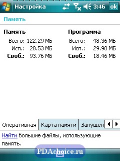 Скажу так: если вы ранее были обладателем коммуникатора на Windows Mobile, а тем более на базе более медленного процессора, то разницу вы скорее всего почувствуете, хотя и незначительную. Но если RoverPC G6 станет для вас первым коммуникатором, то скорость работы в меню, в программах, не покажется вам невероятно быстрой. Все дело в особенностях самой ОС Windows Mobile – ни для кого не секрет, что эта операционная система далеко не самая быстрая, так что не стоит ждать от RoverPC G6 фантастической скорости работы из-за одного процессора. Количество оперативной памяти стандартное для новых моделей – 64 Мб. Зато объем памяти для хранения данных радует – 256 Мб против 128 в большинстве современных моделей. После первого запуска и конфигурации (установка программ из набора RoverPC, загрузки в память системных файлов) для запуска программ остается около 18-20 Мб оперативной (RAM) памяти. Из 256 Мб после первого запуска остается примерно 100 Мб доступной для установки программ памяти. Проведем тестирование производительности RoverPC G6 с помощью нескольких программ бенчмарков. В этот раз мы решили добавить новый тест с помощью приложения VSBenchmark 2007, которое производит замеры скорости работы для графики, звука и некоторых других компонентов. В будущем каждое устройство будет тестироваться нами в этом пакете. Но начнем с более традиционного, хотя и не самого показательного SPB Benchmark.