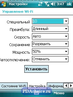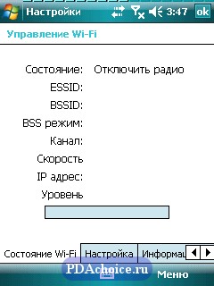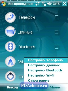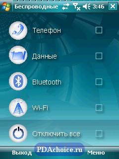 В коммуникаторе используется Bluetooth 1.2. Есть поддержка профиля A2DP, отвечающего за передачу звука на беспроводную стереогарнитуру или стереонаушники. Модуль WiFi имеет версию 802.11b/g. Для этого интерфейса в коммуникаторе есть специальная программа, которая позволяет изменять мощность передатчика в зависимости от разных условий, и тем самым экономить заряд батареи.