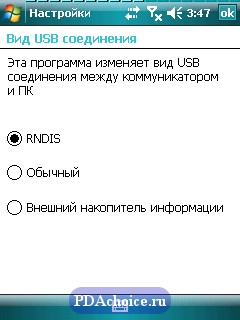 При включенном WiFi, коммуникатор почти не нагревается даже спустя час работы. Приятная мелочь, особенно на фоне некоторых смартфонов с WiFi, которые греются очень сильно. Для подключения к компьютеру предусмотрено несколько режимов. Стандартный, RNDIS (если ПК не определяет устройство через стандартный режим), а также режим, в котором память коммуникатора видна как flash-память.